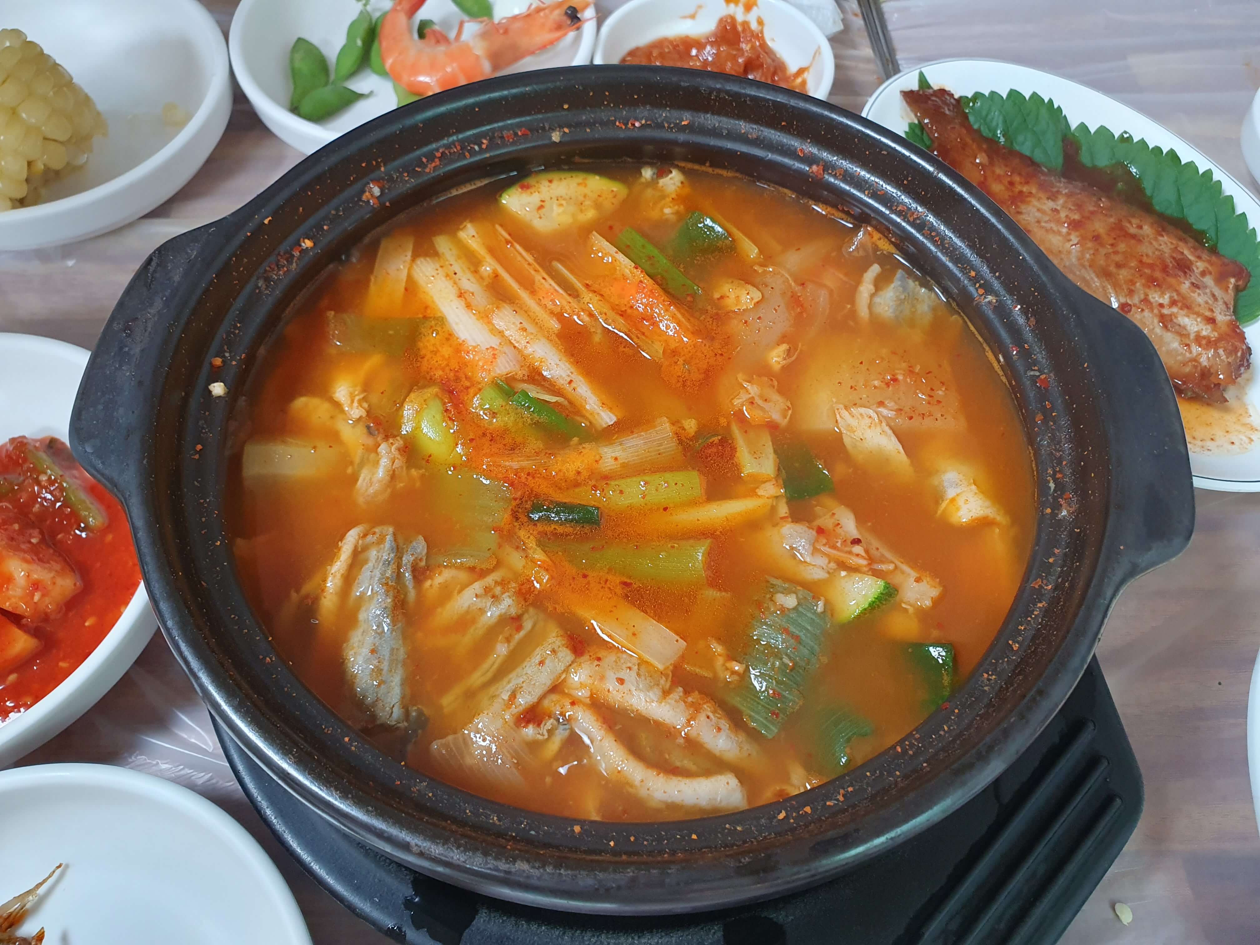 붕장어 회/구이를 다 먹은 후 매운탕(대)를 주문했습니다.