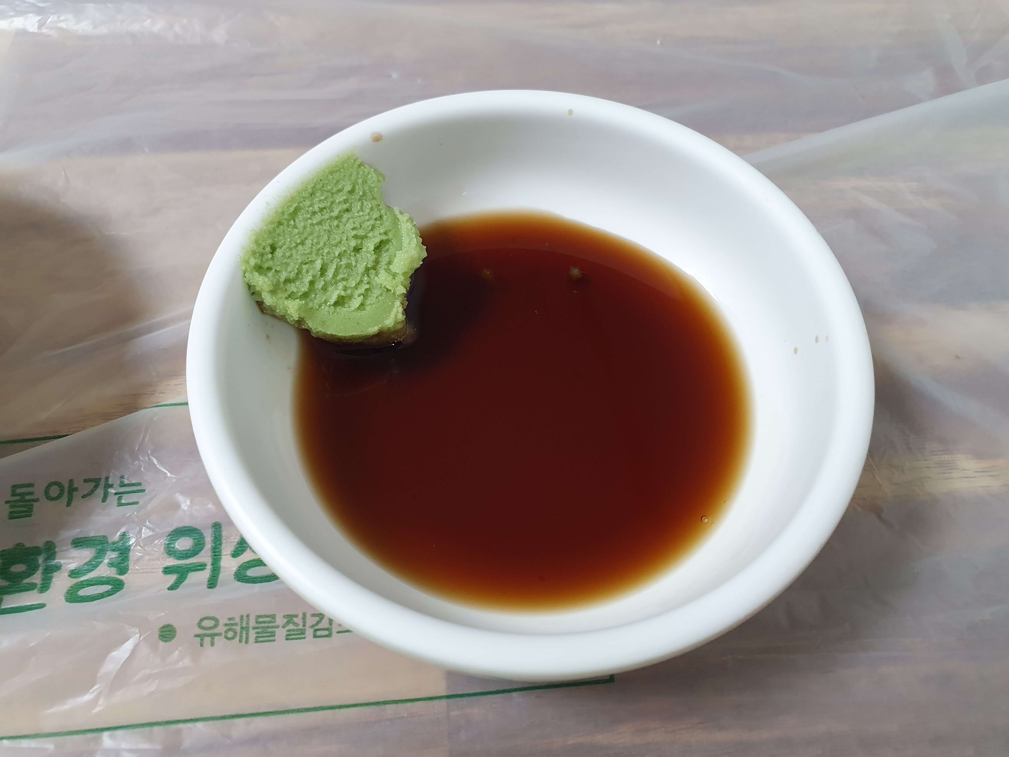 간장, 고추냉이를 같이 찍어 먹으면 더 맛있습니다.