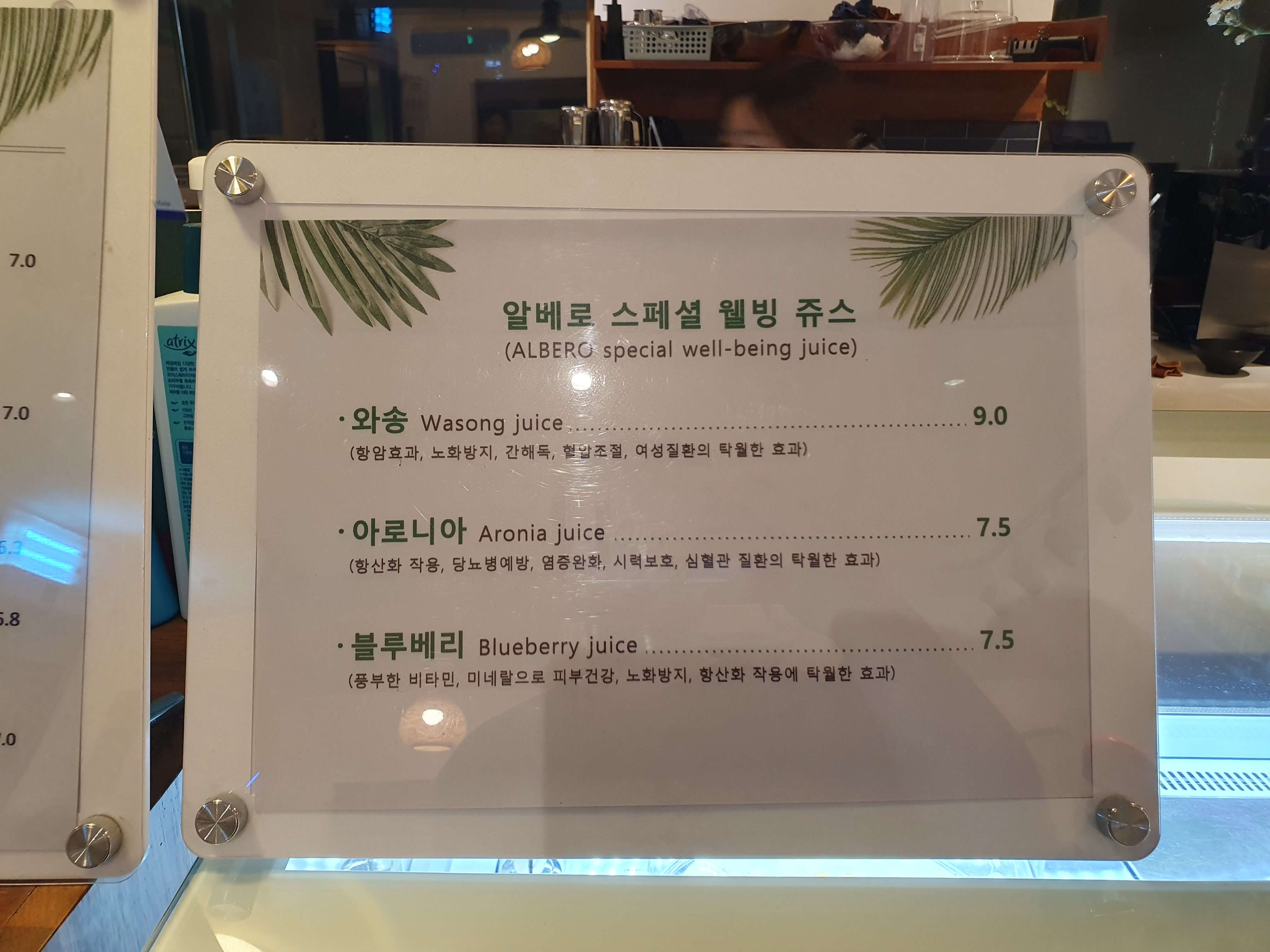 스페셜 웰빙 쥬스 메뉴입니다.