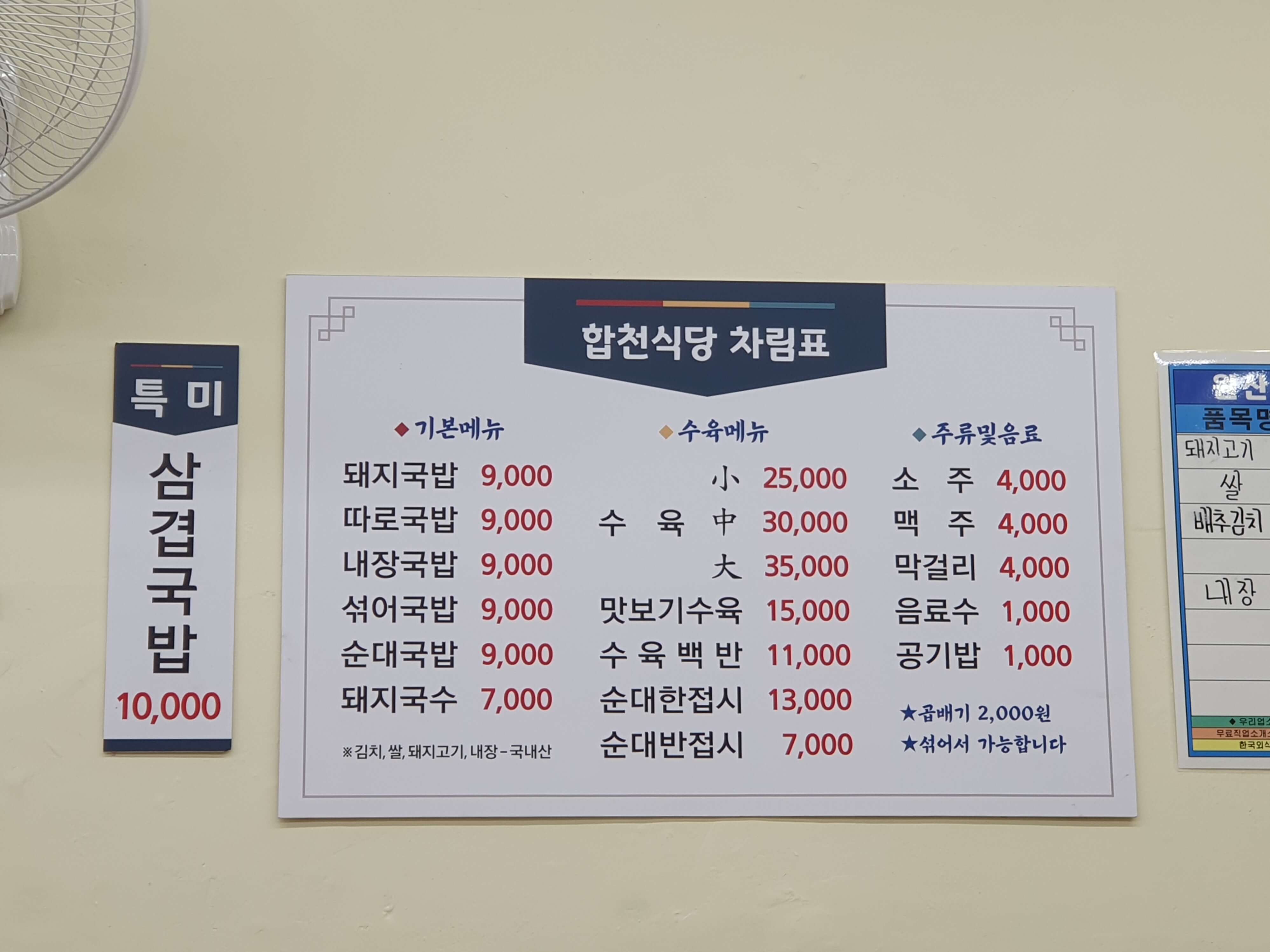 합천식당 메뉴입니다.