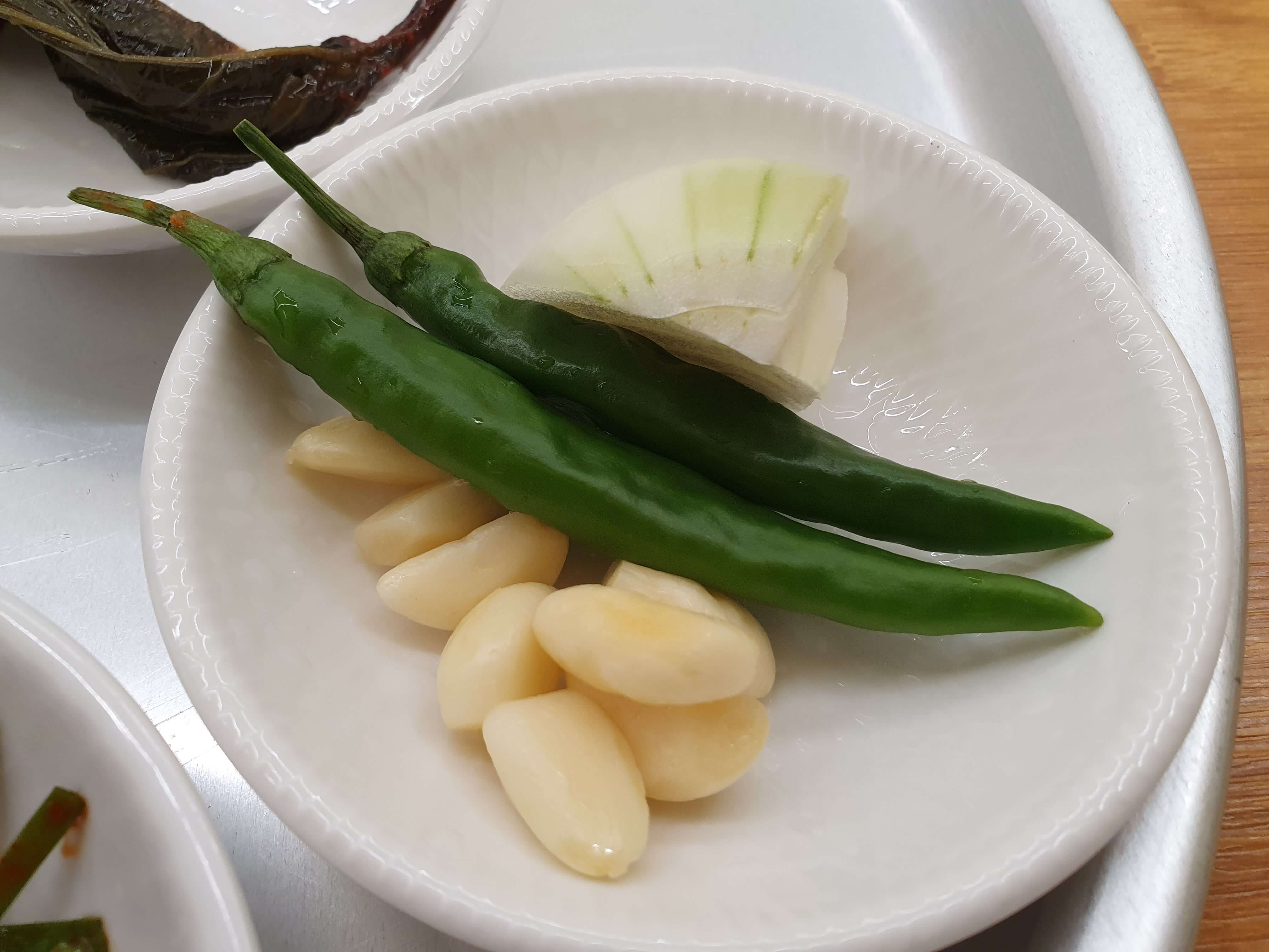 마늘, 땡초, 양파, 쌈장입니다.