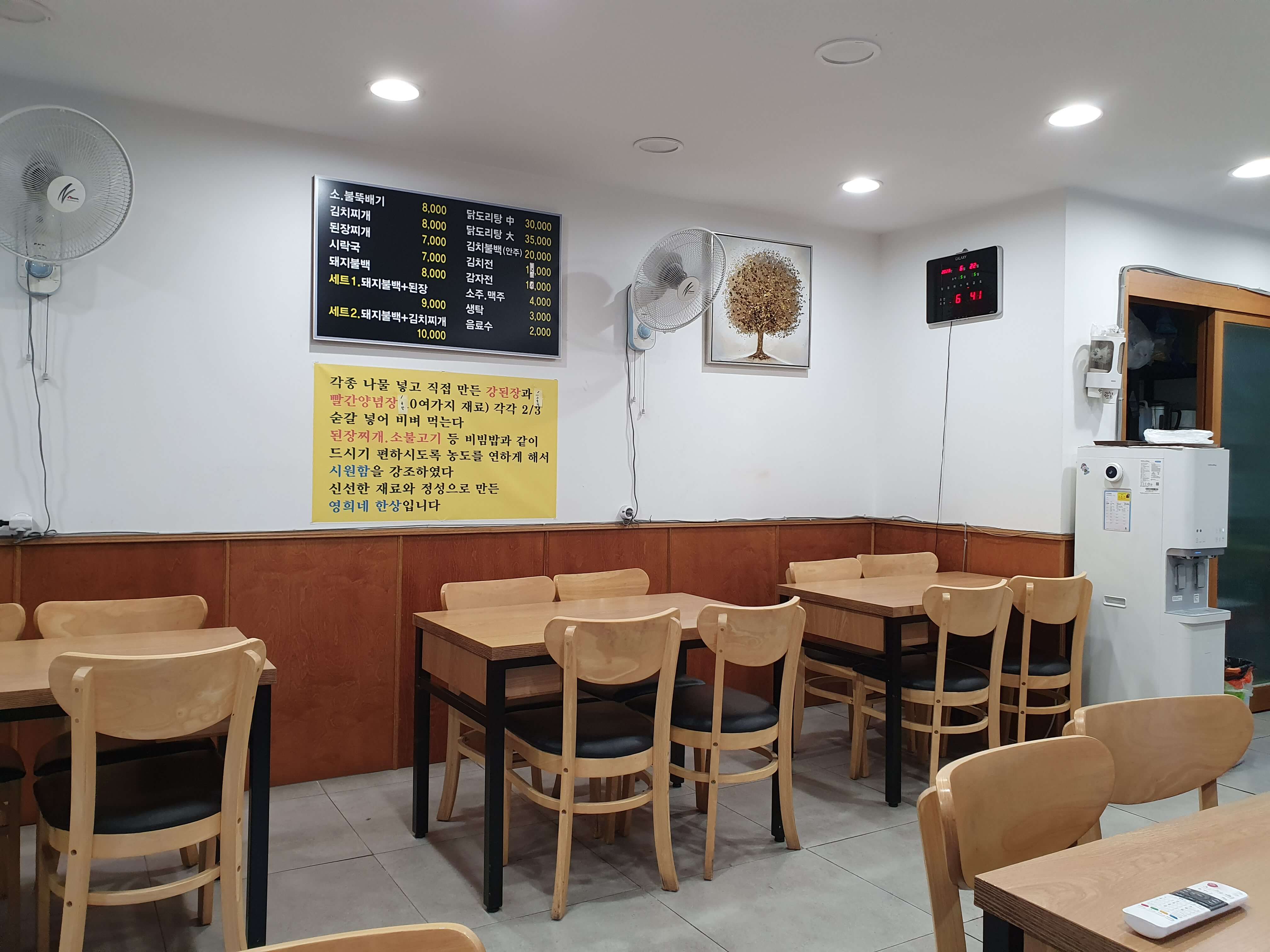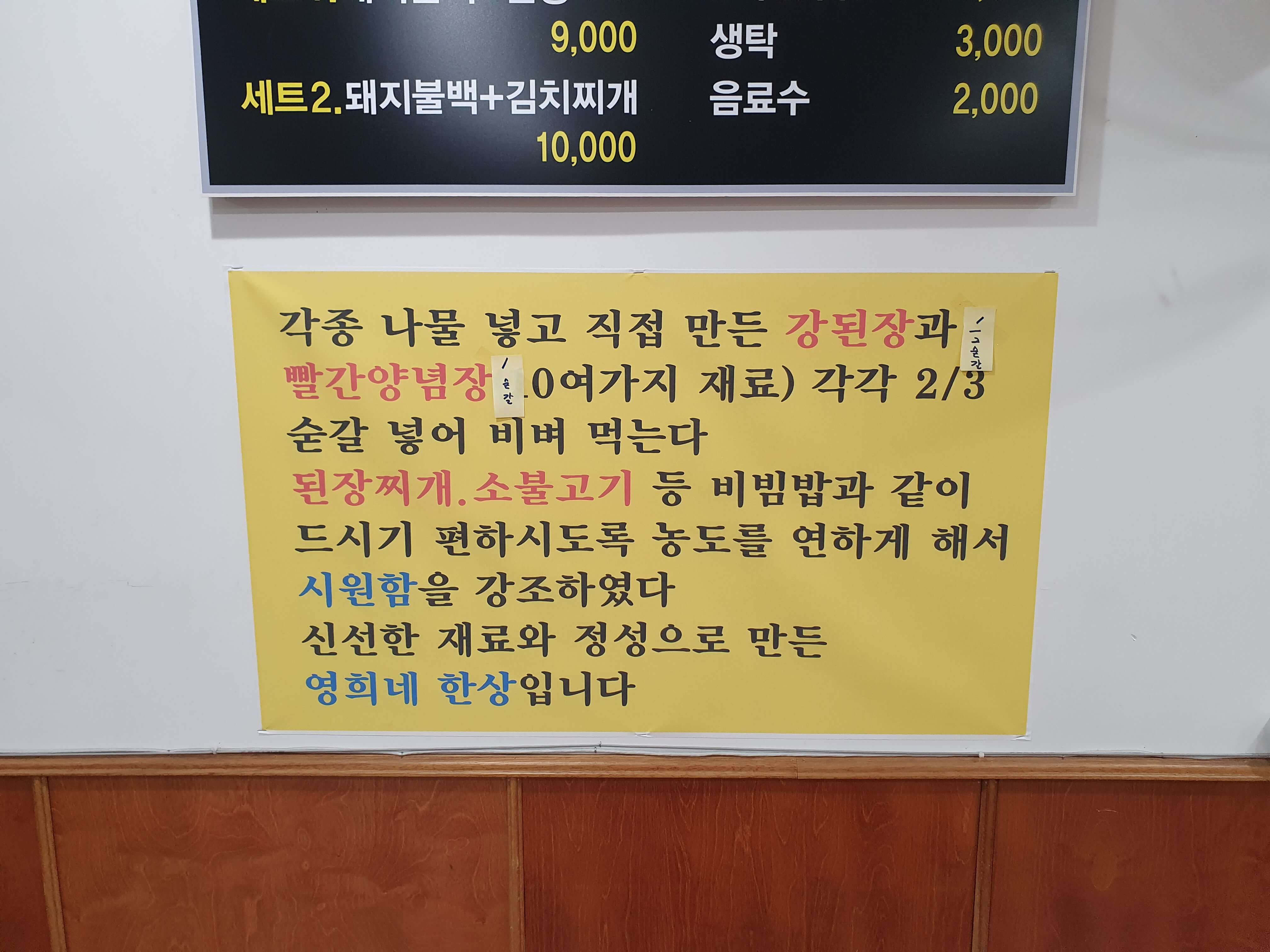 영희네한상의 메뉴입니다.