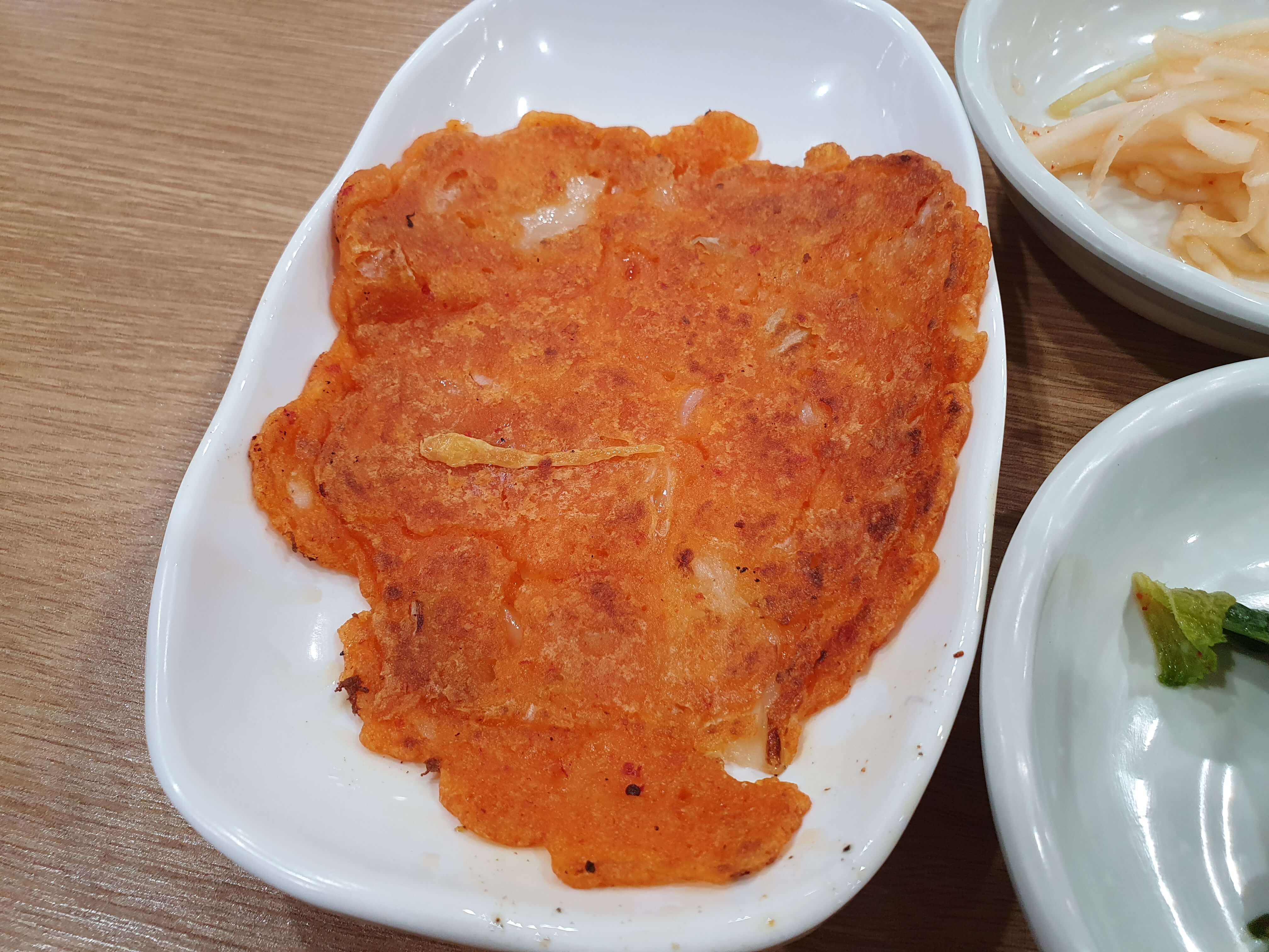 미리 부쳐놓지 않고, 주문이 들어오면 부쳐서 나오 따끈따끈한 김치전입니다.