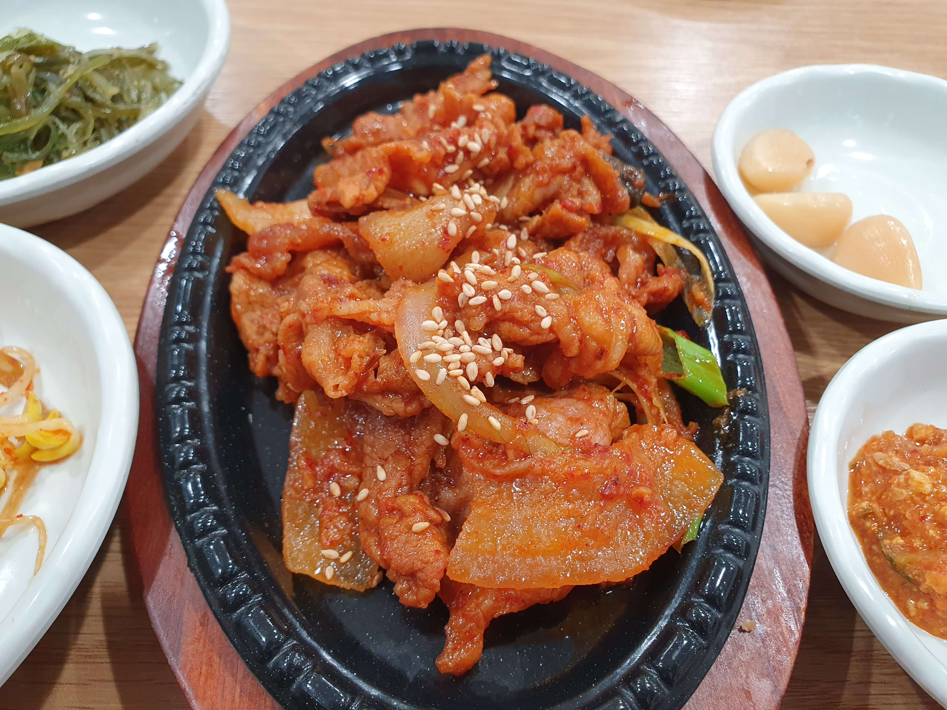 매콤달콤한 맛을 내는 돼지불백이며, 맛있습니다.