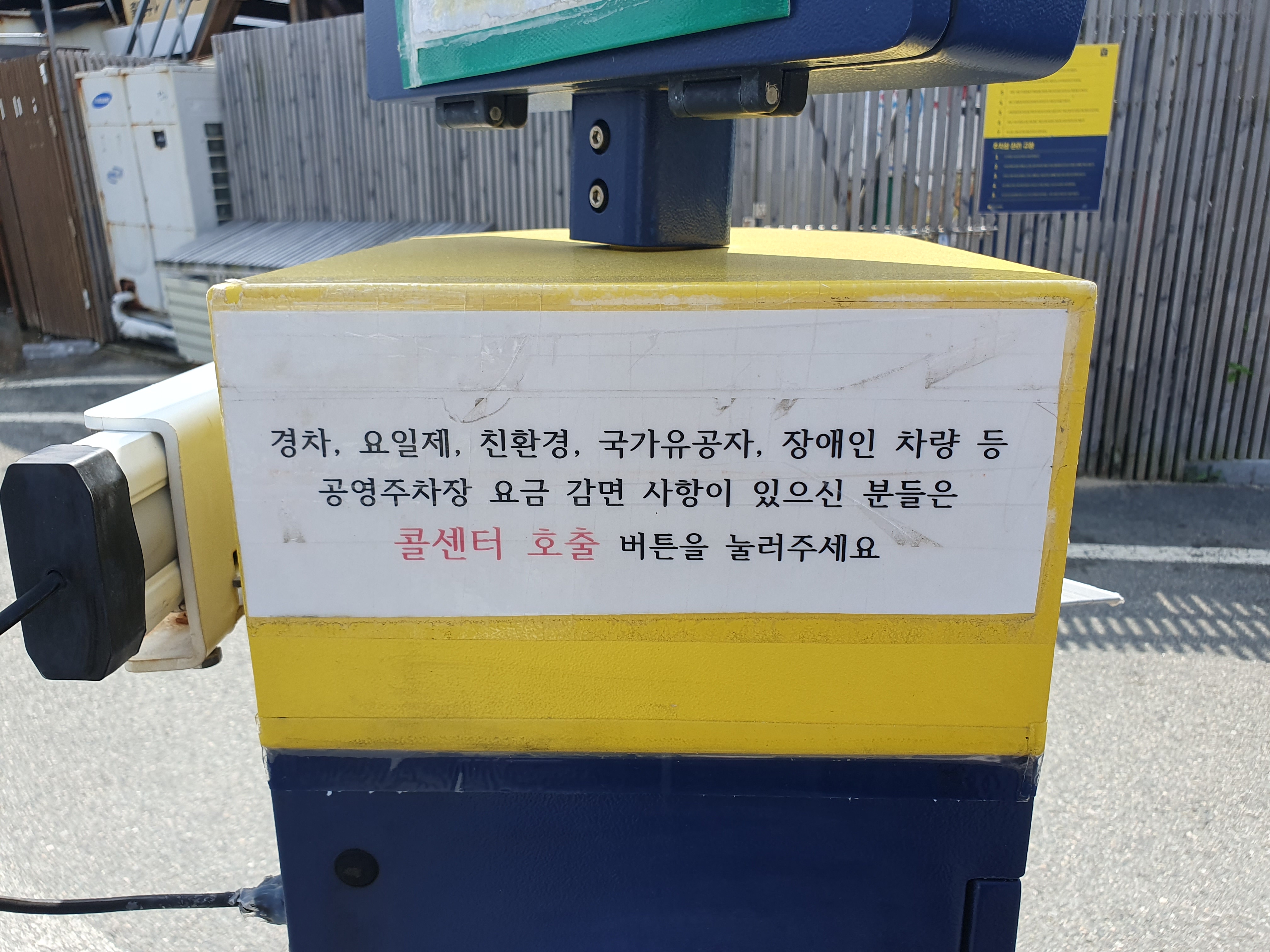 경차, 요일제, 친환경, 국가유공자, 장애인 차량 등 공영주차장 요금 감면 사항이 있으신 분들은 콜센터 호출 버튼을 눌러주세요.
