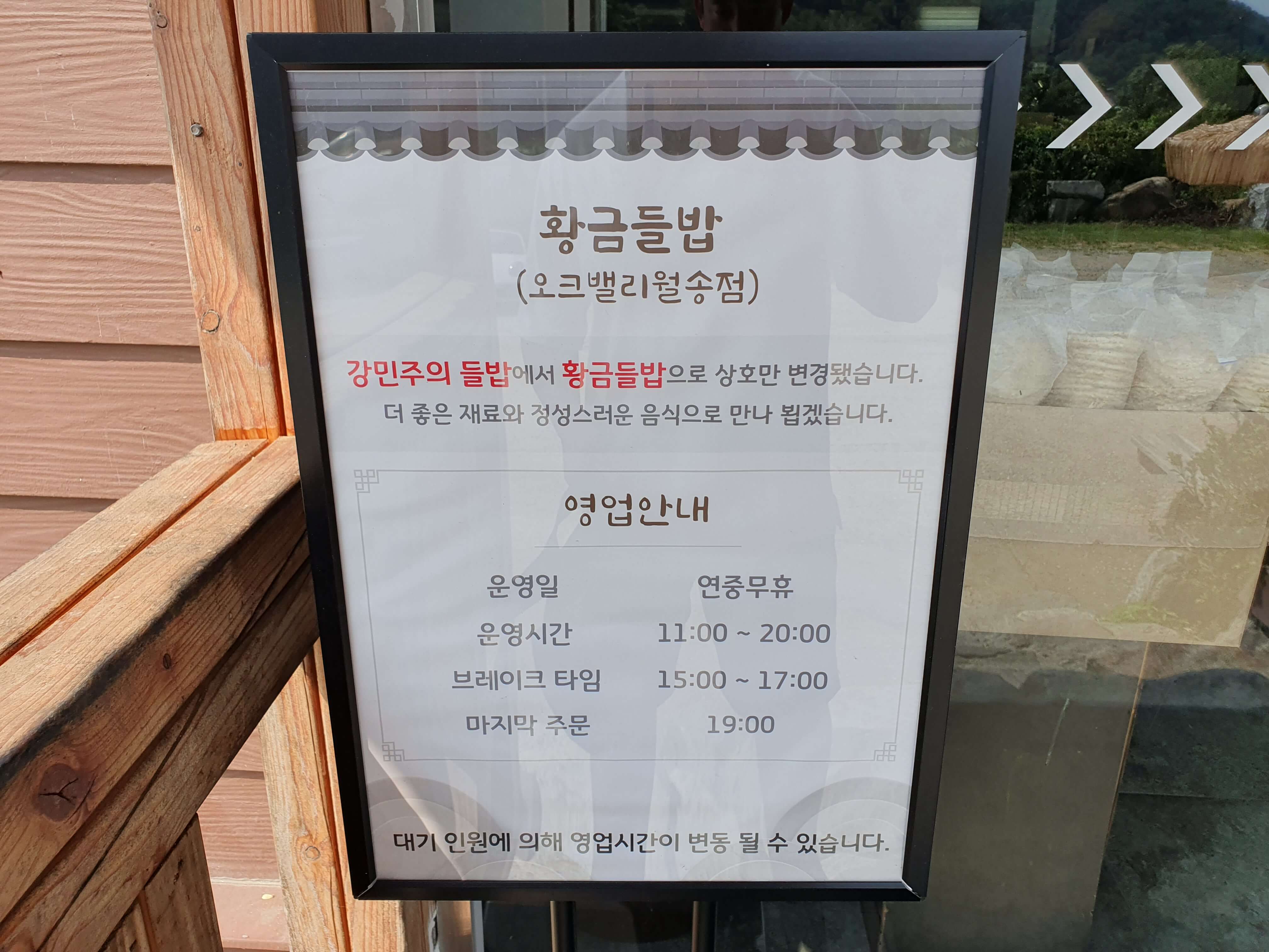 황금들밥 오크밸리 월송점 정보