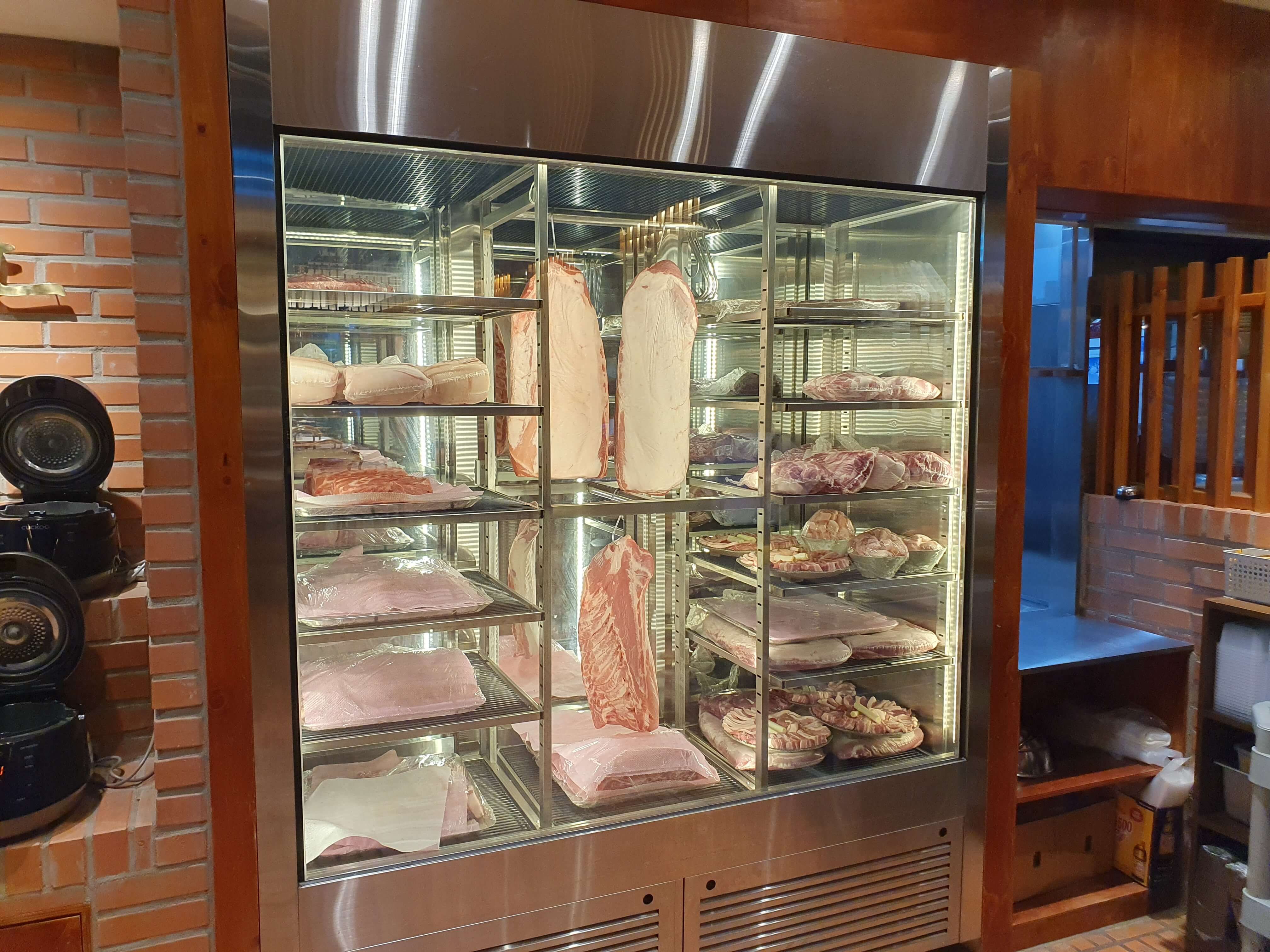숙성 보관중인 돼지고기의 여러 부위들입니다.