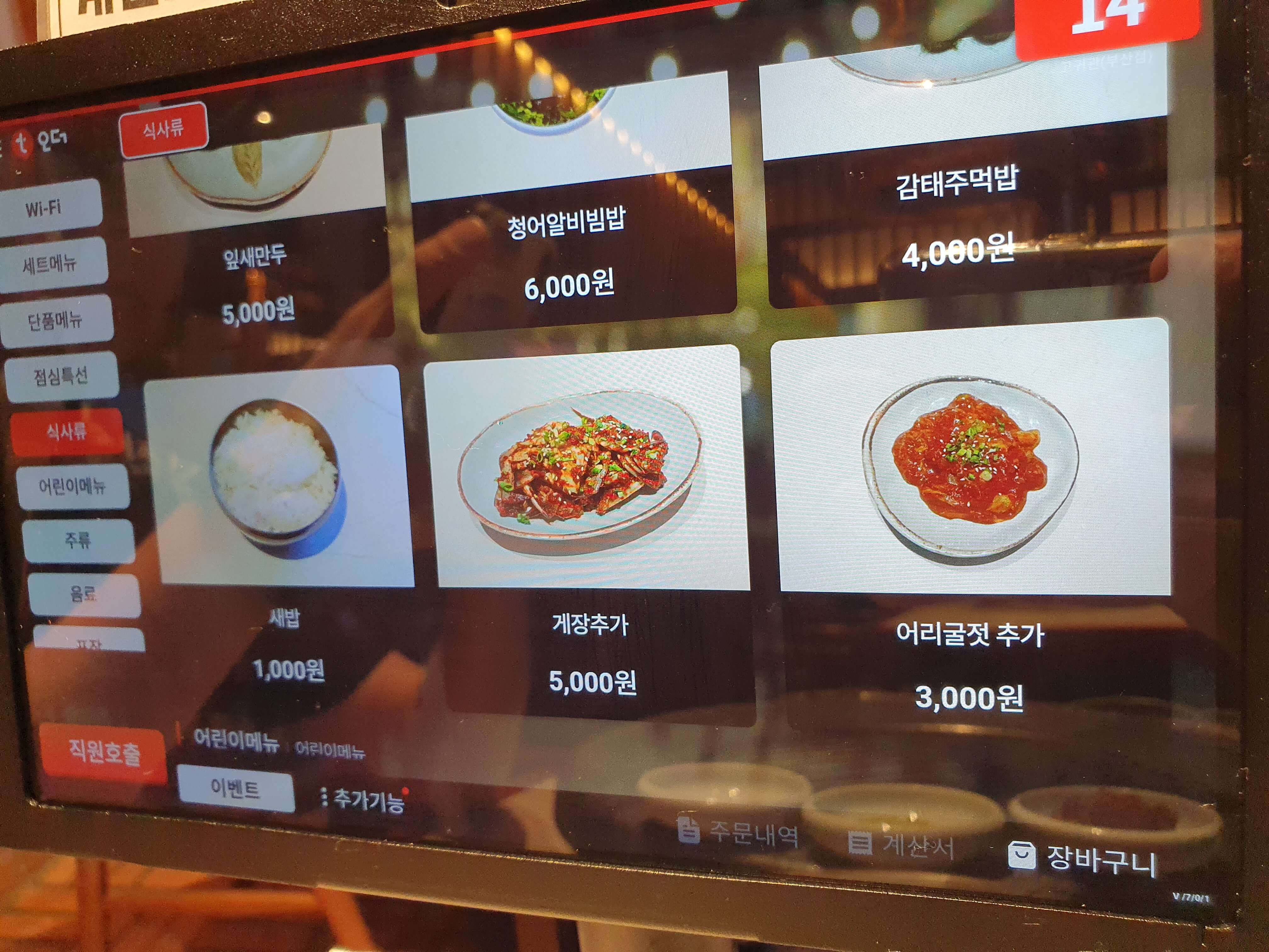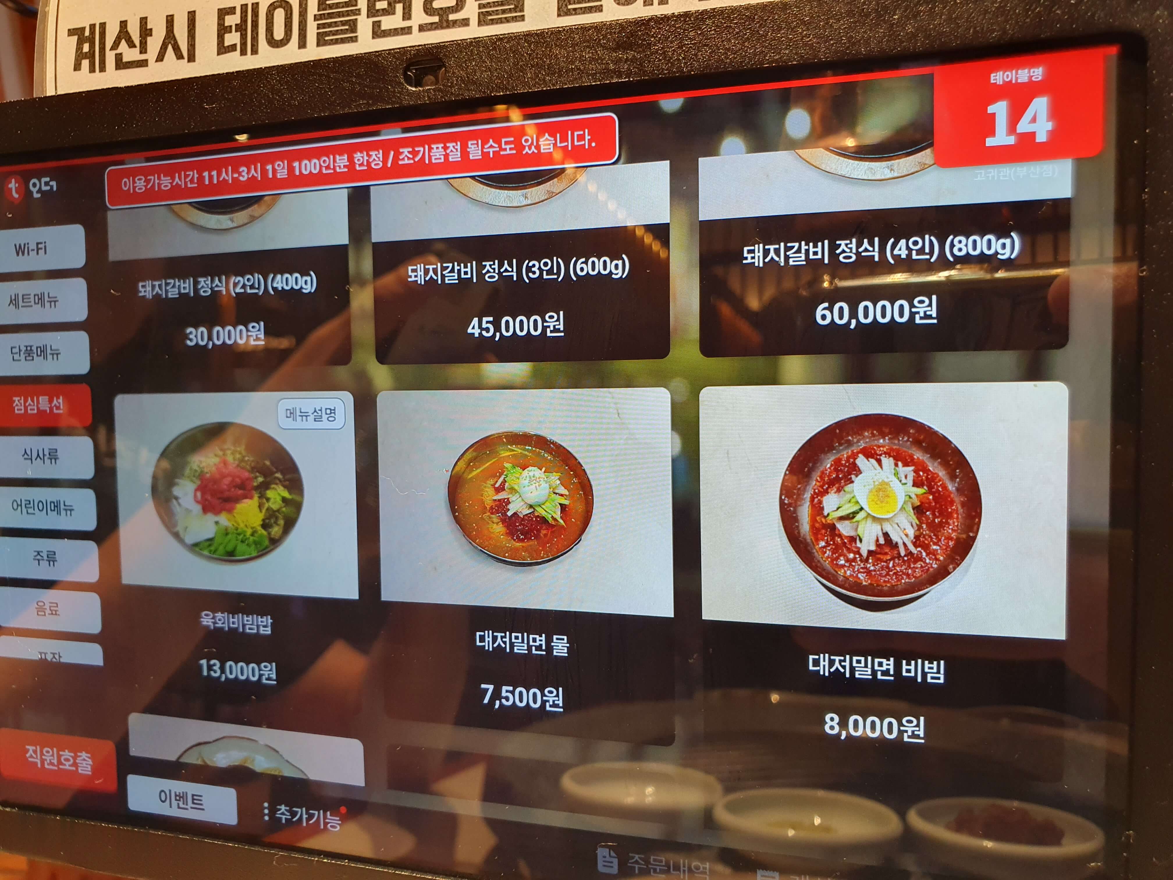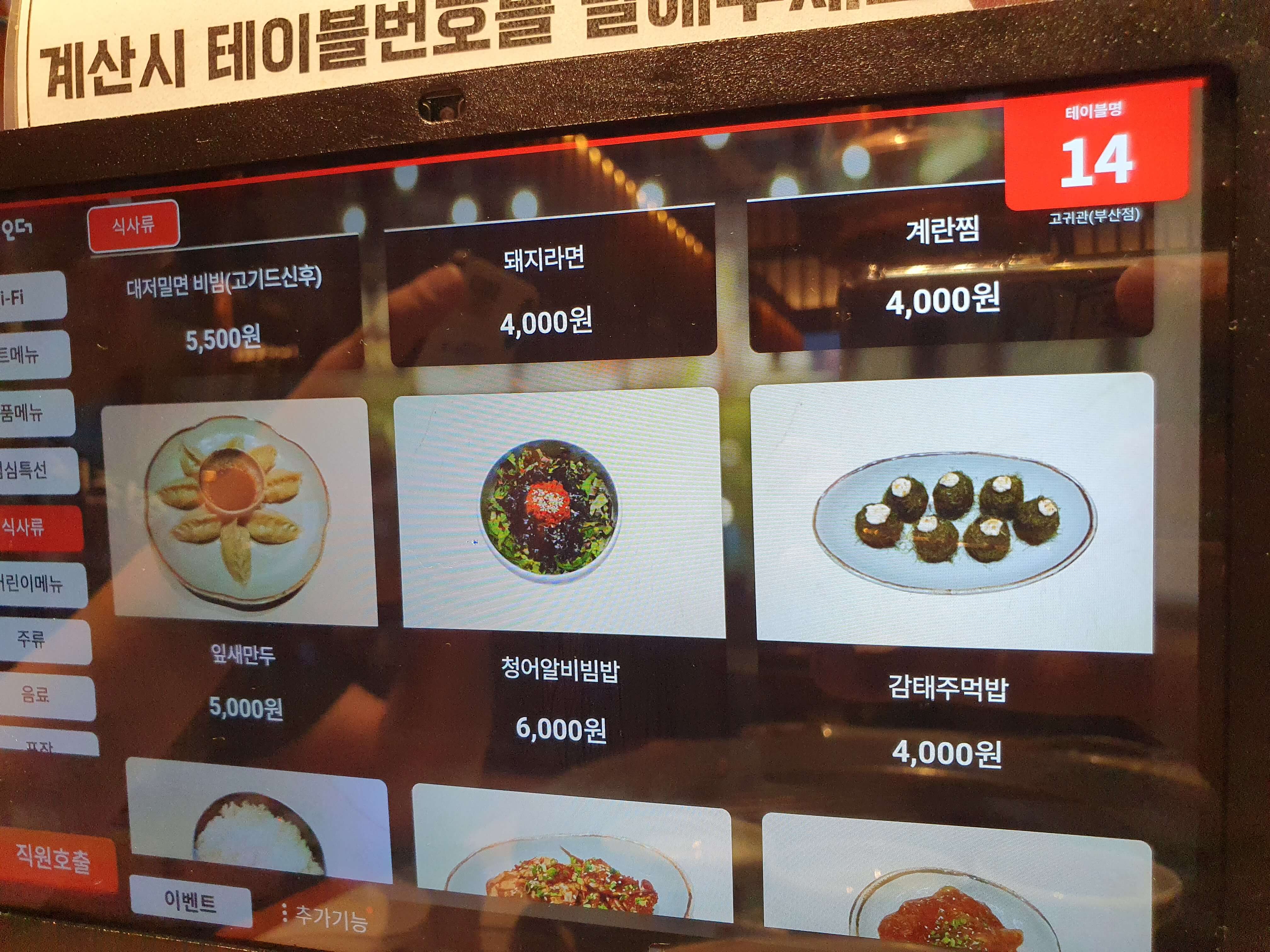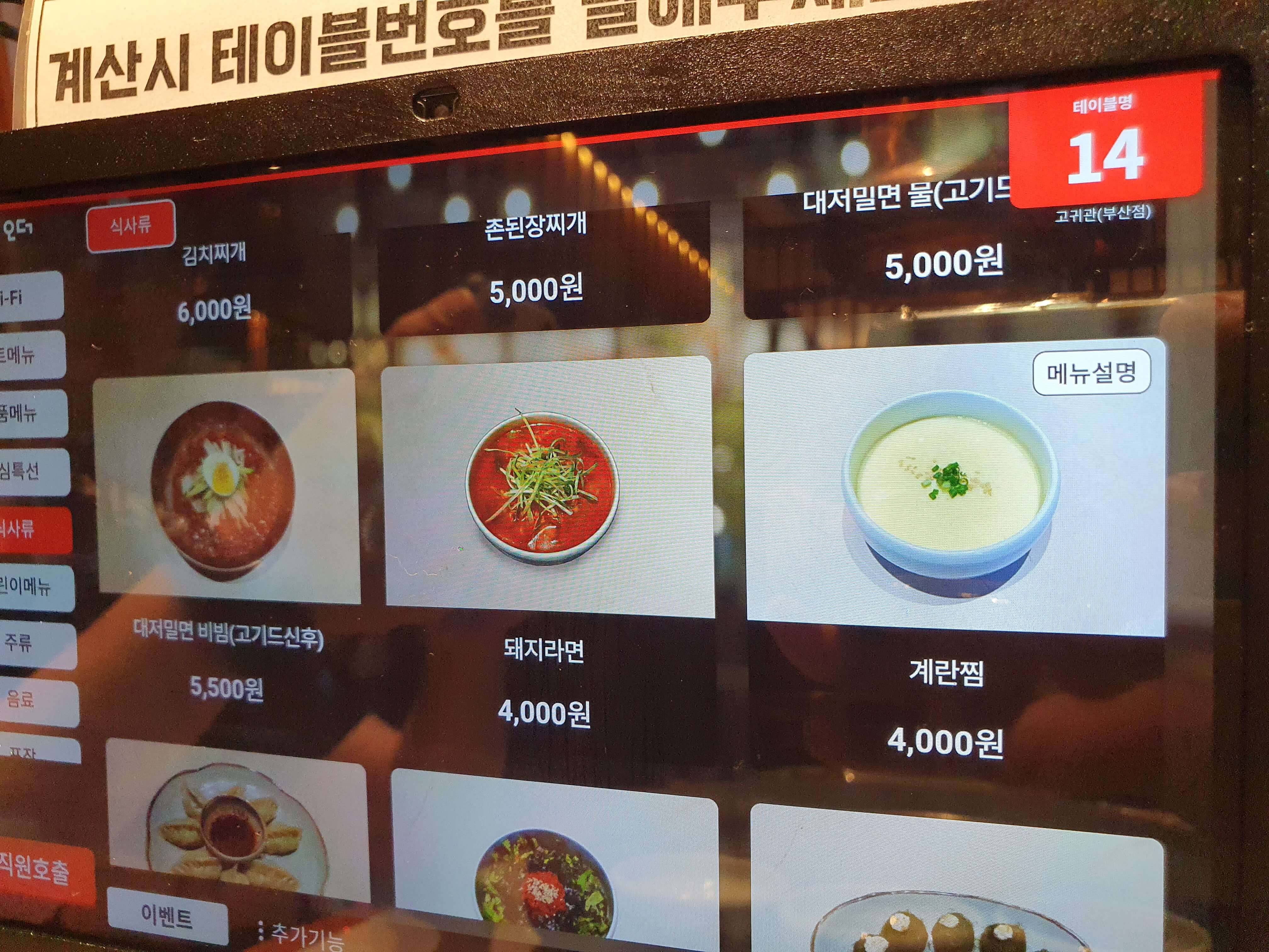 메뉴는 종이가 아닌 키오스크로 되어 있습니다.