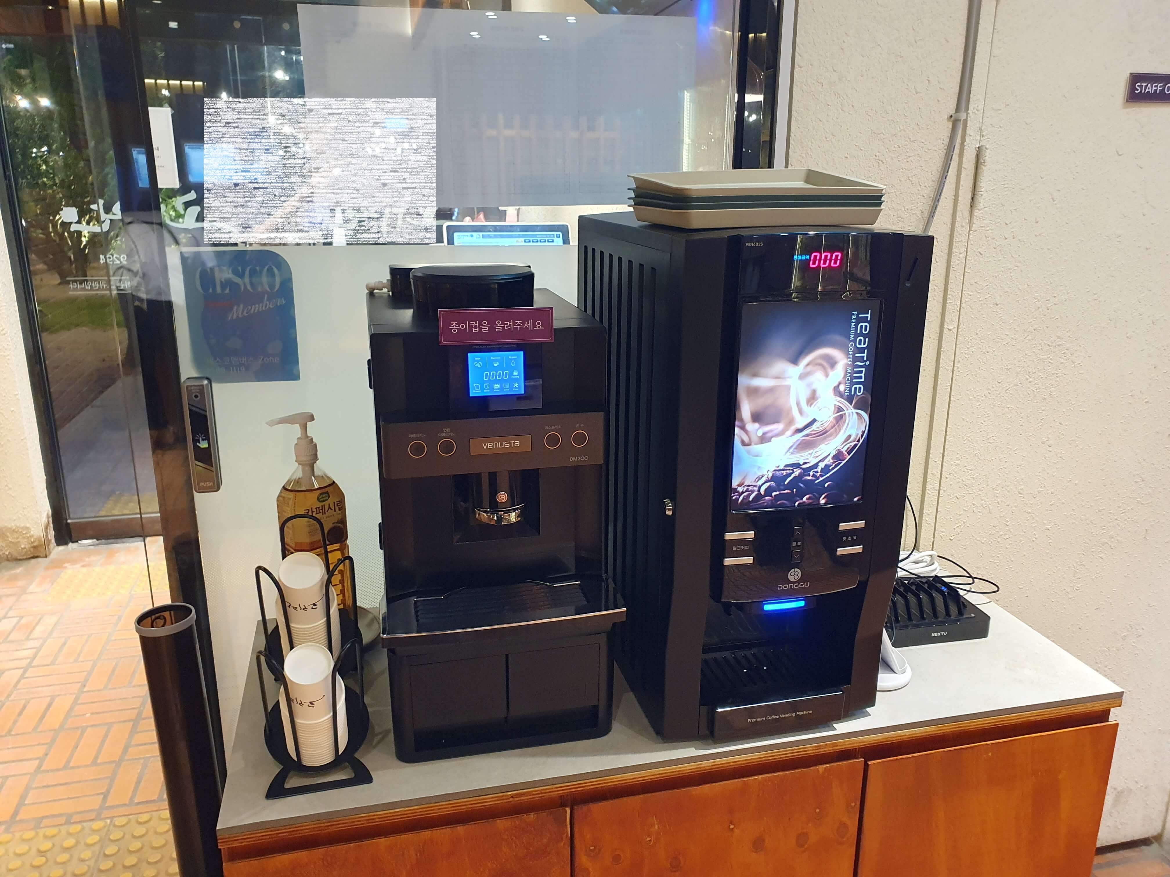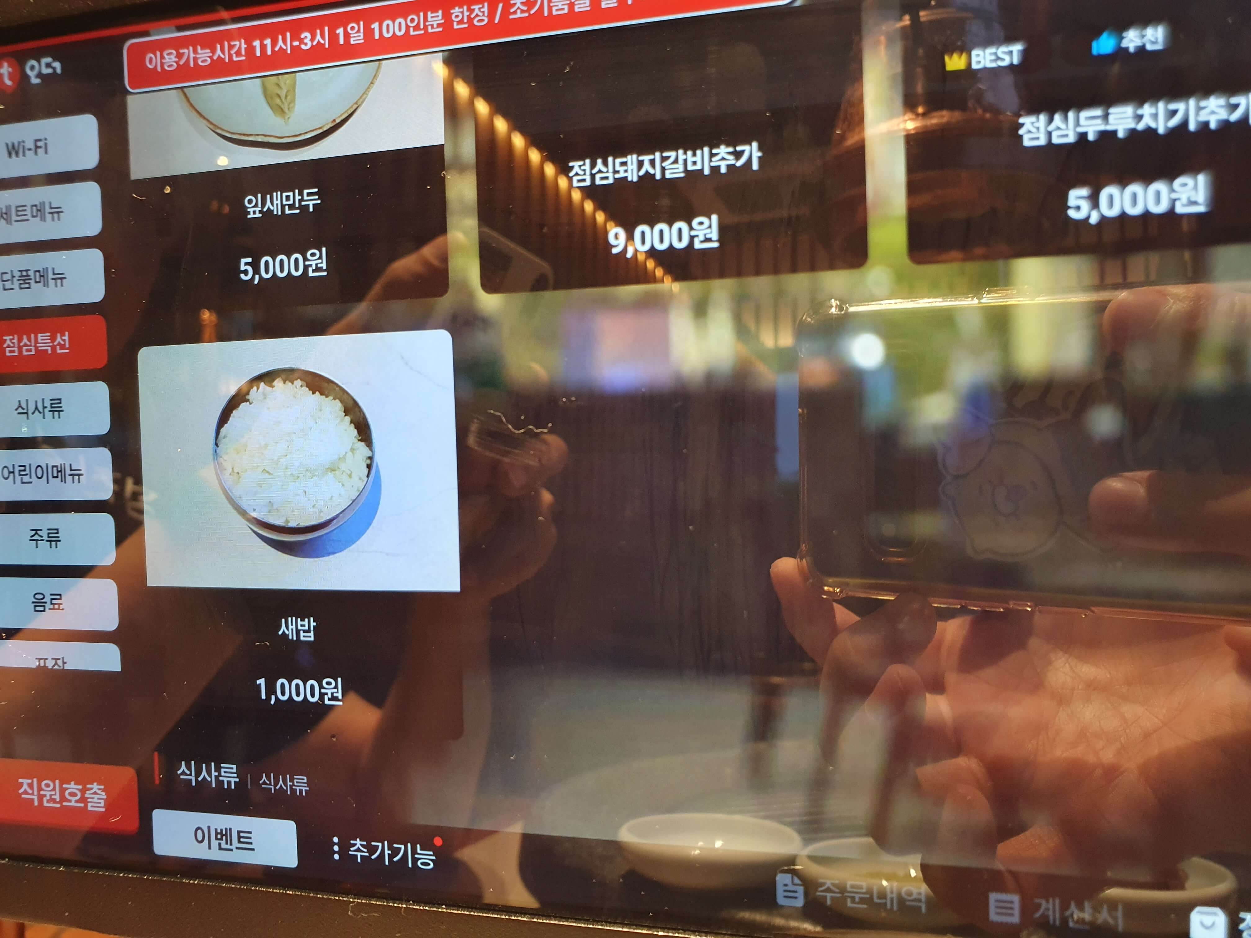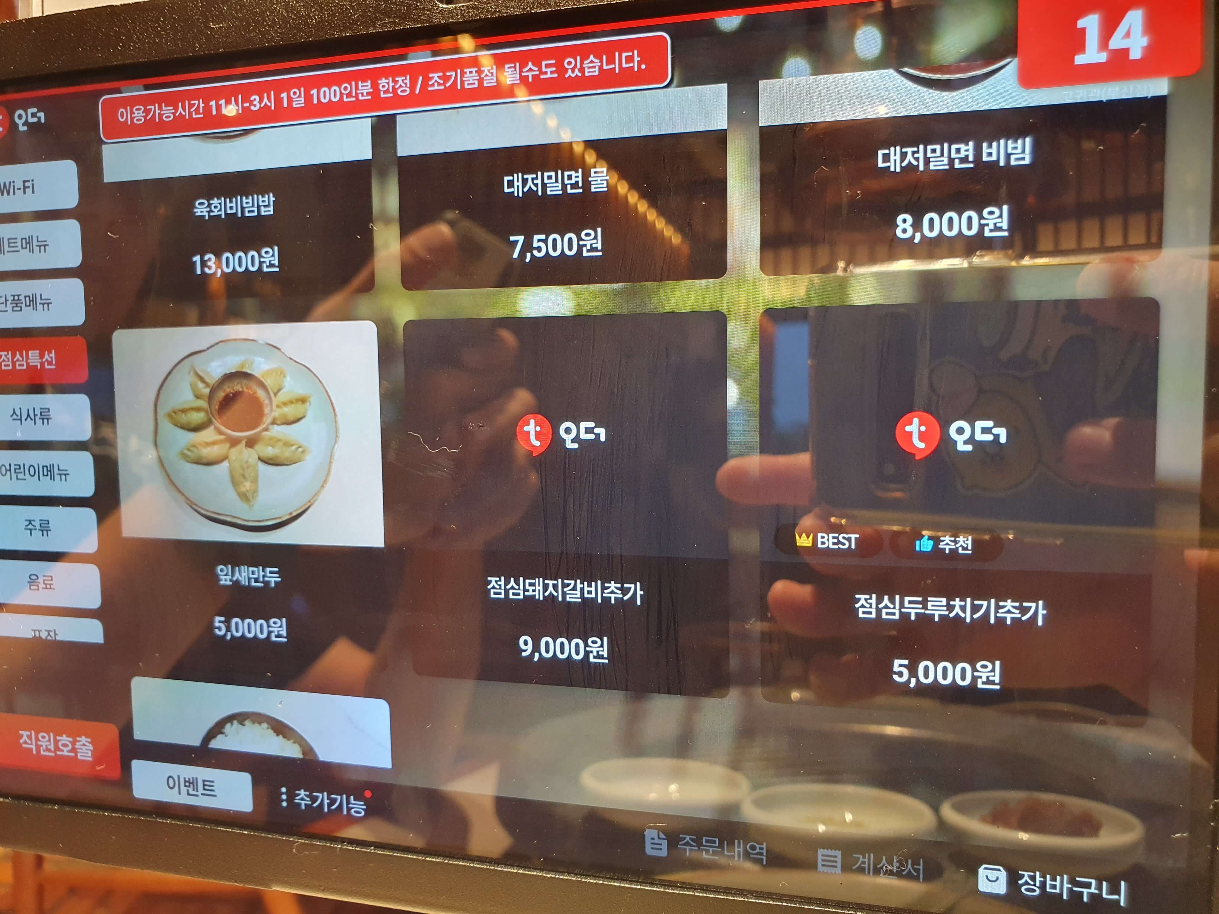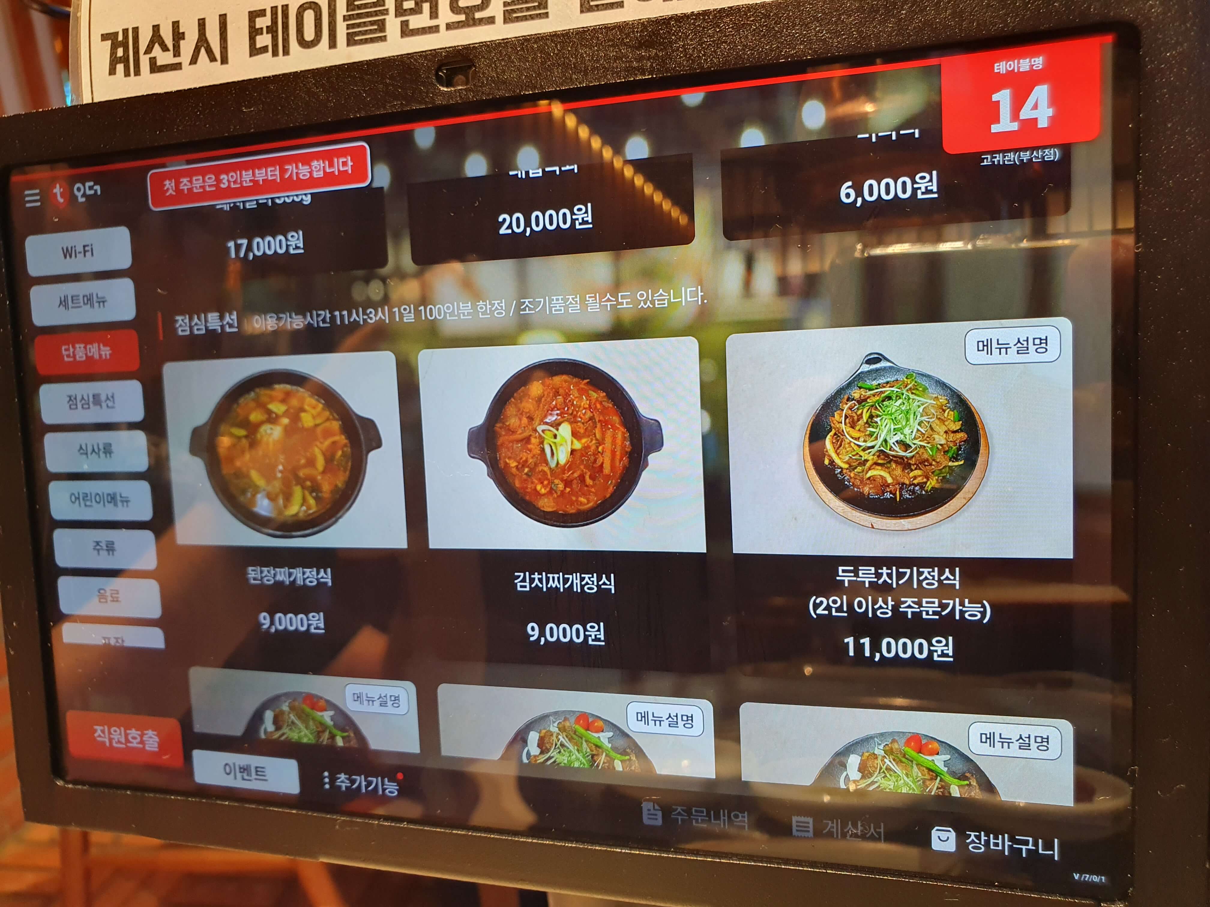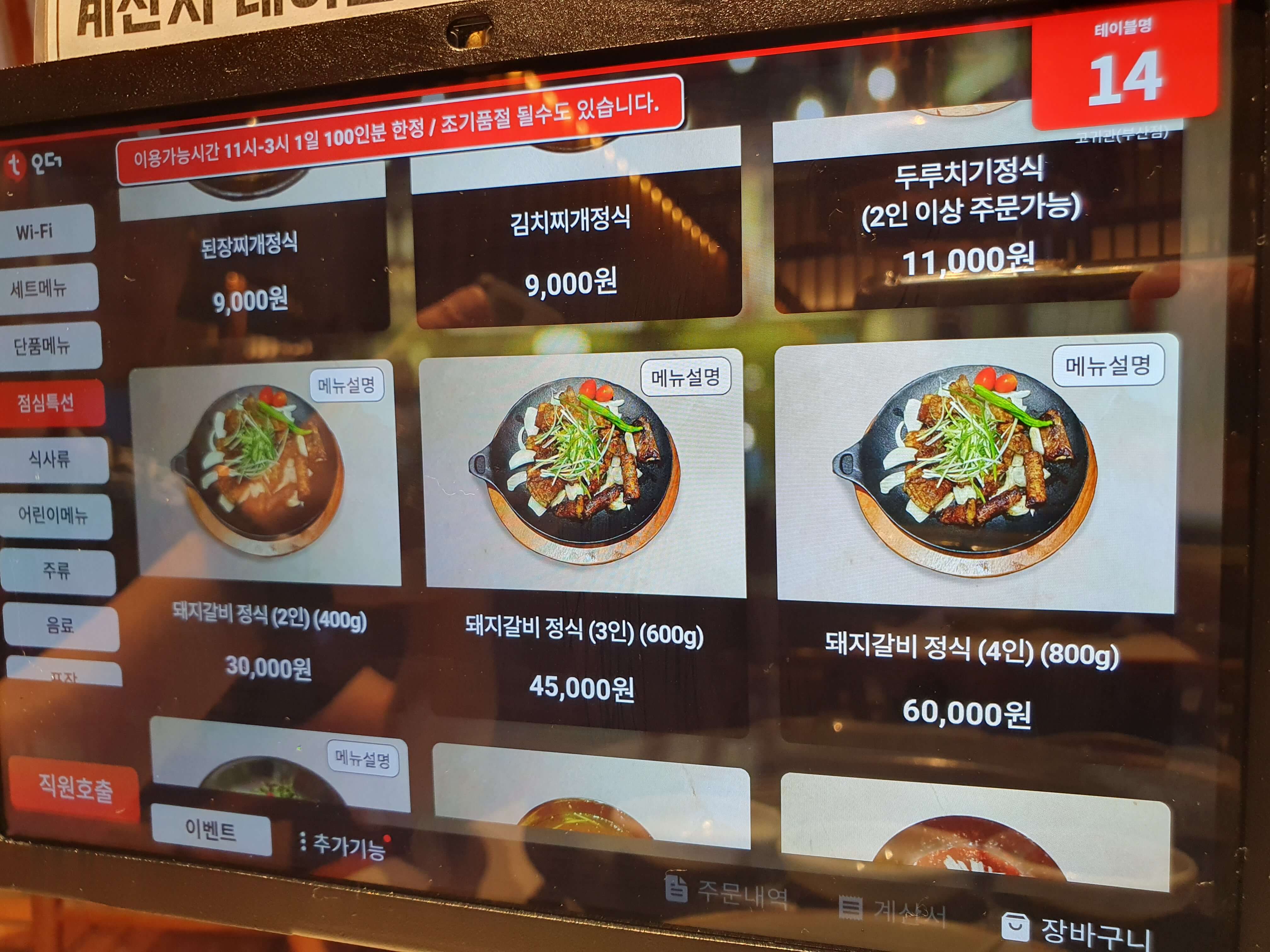 메뉴는 종이가 아닌 키오스크로 되어 있습니다.