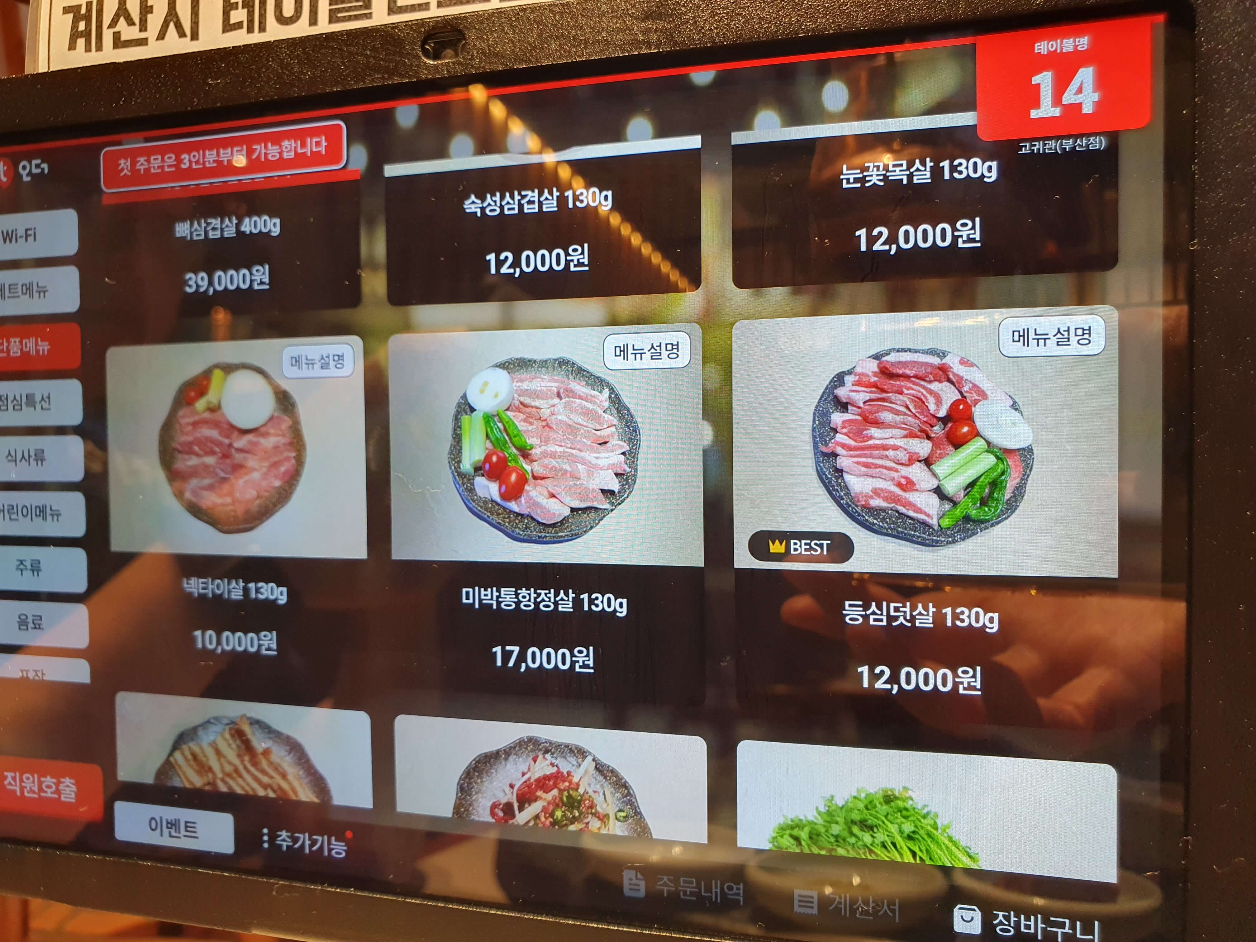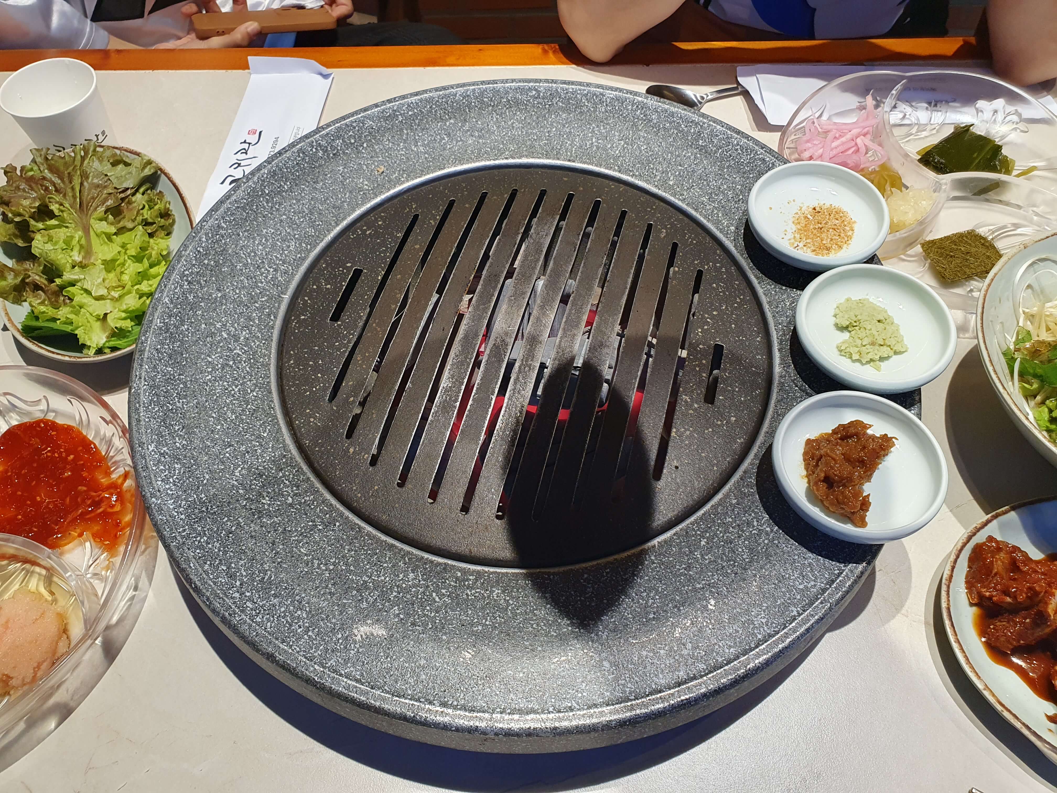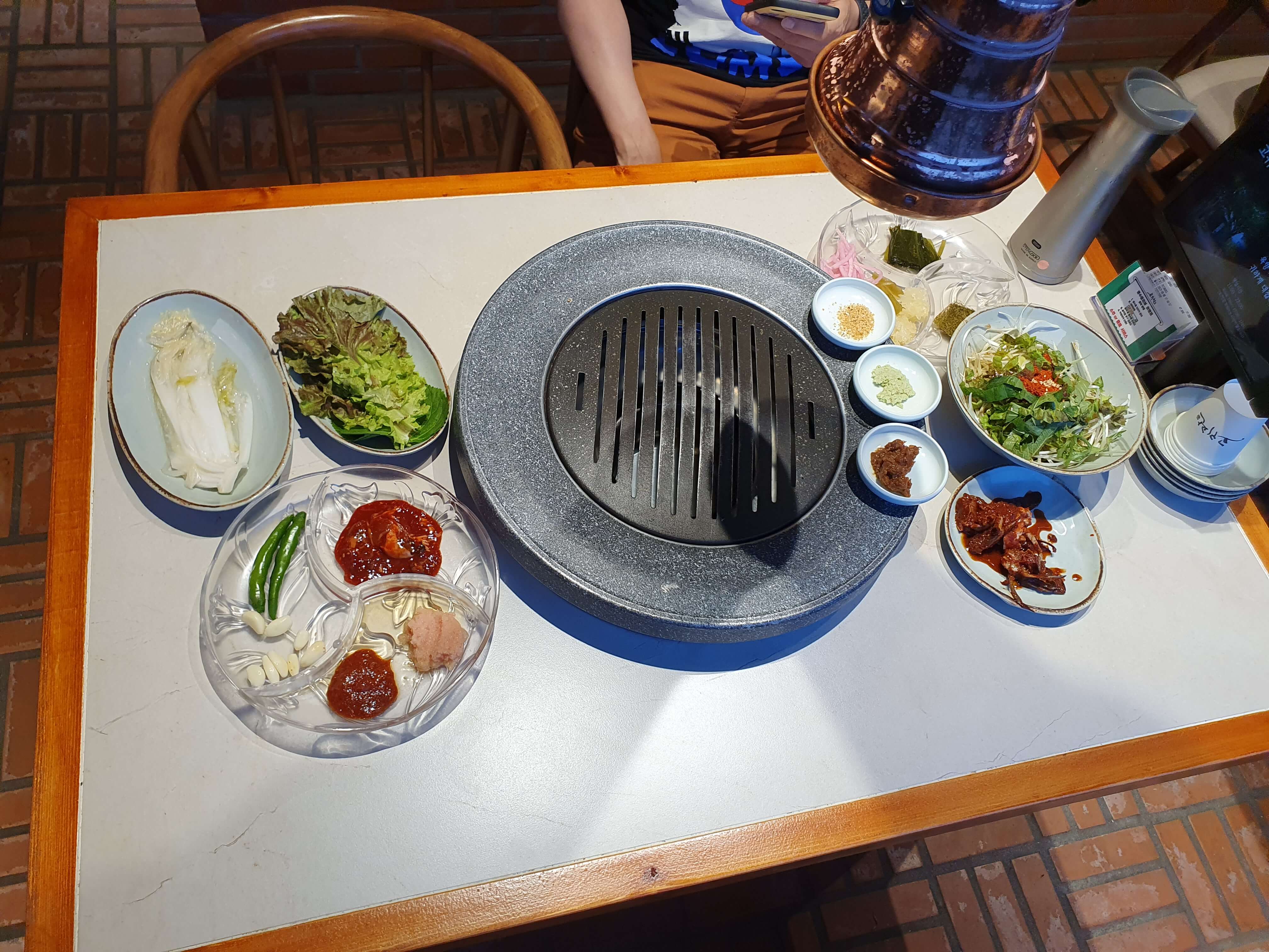 원래는 직원이 고기를 구워주는 식당인데 직원이 부족한 탓인지 직접 구워먹게 되었습니다.