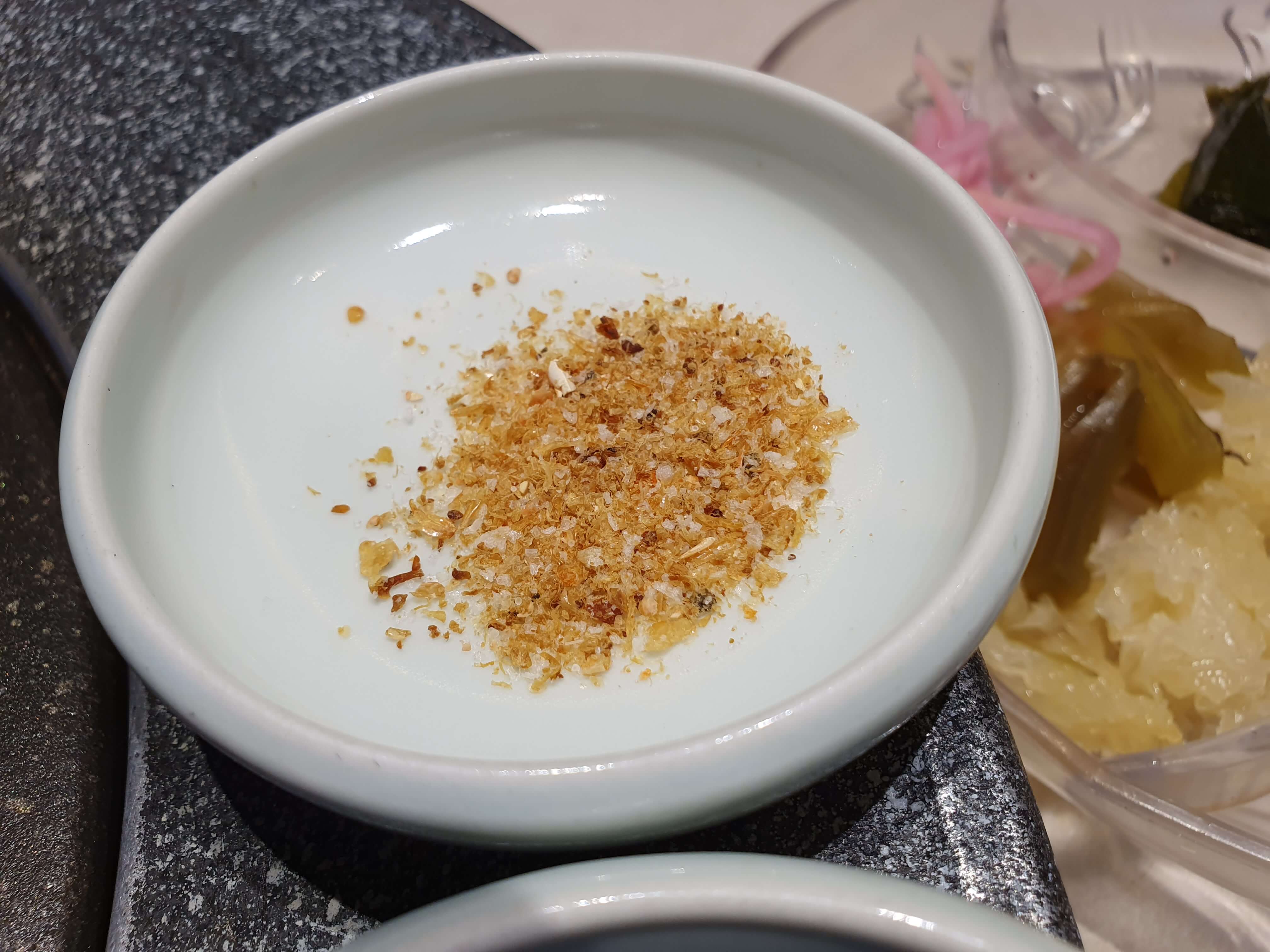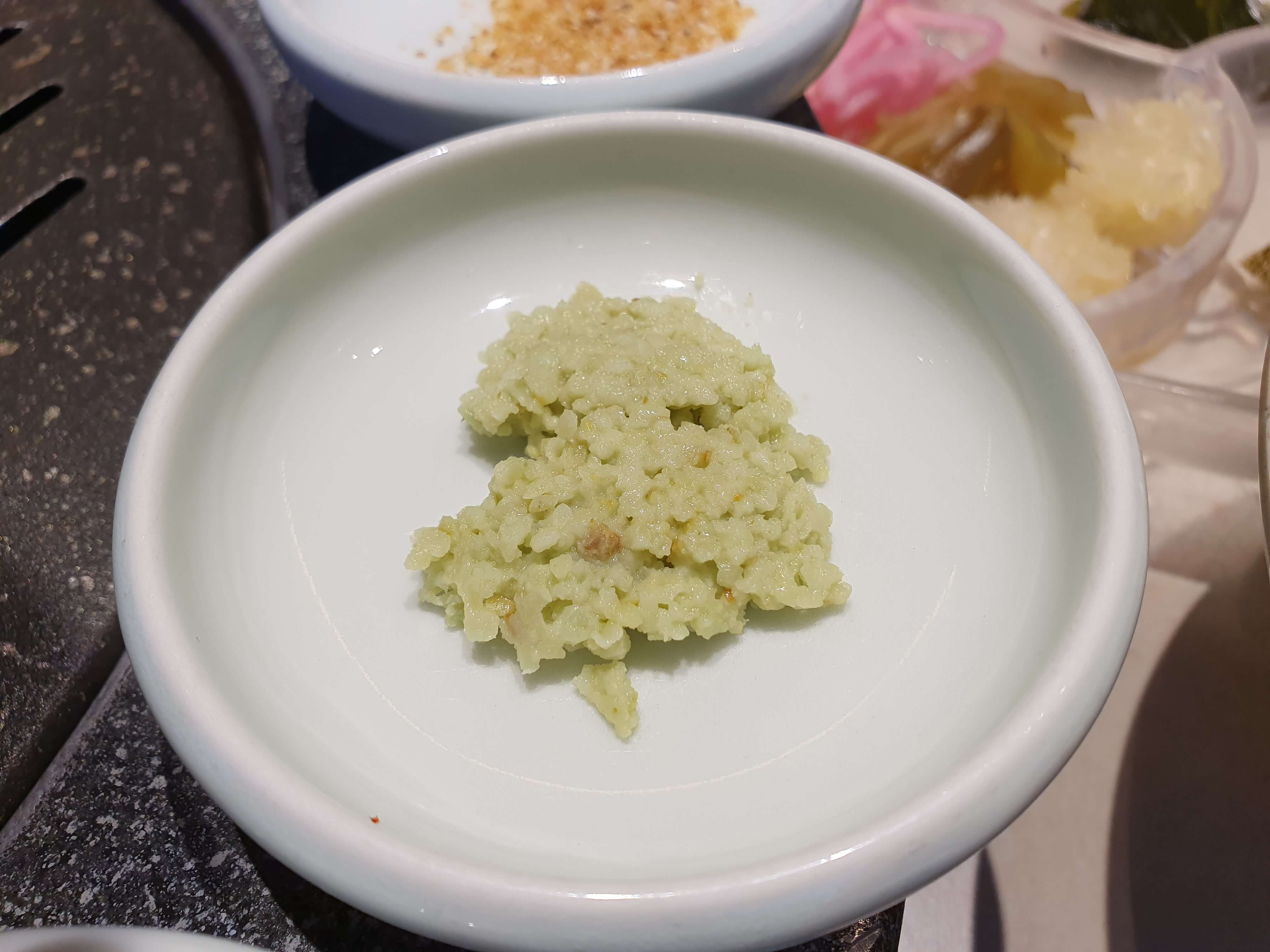 고기를 찍어먹을 수 있는 소금, 고추냉이(와사비), 쌈장이 나옵니다.