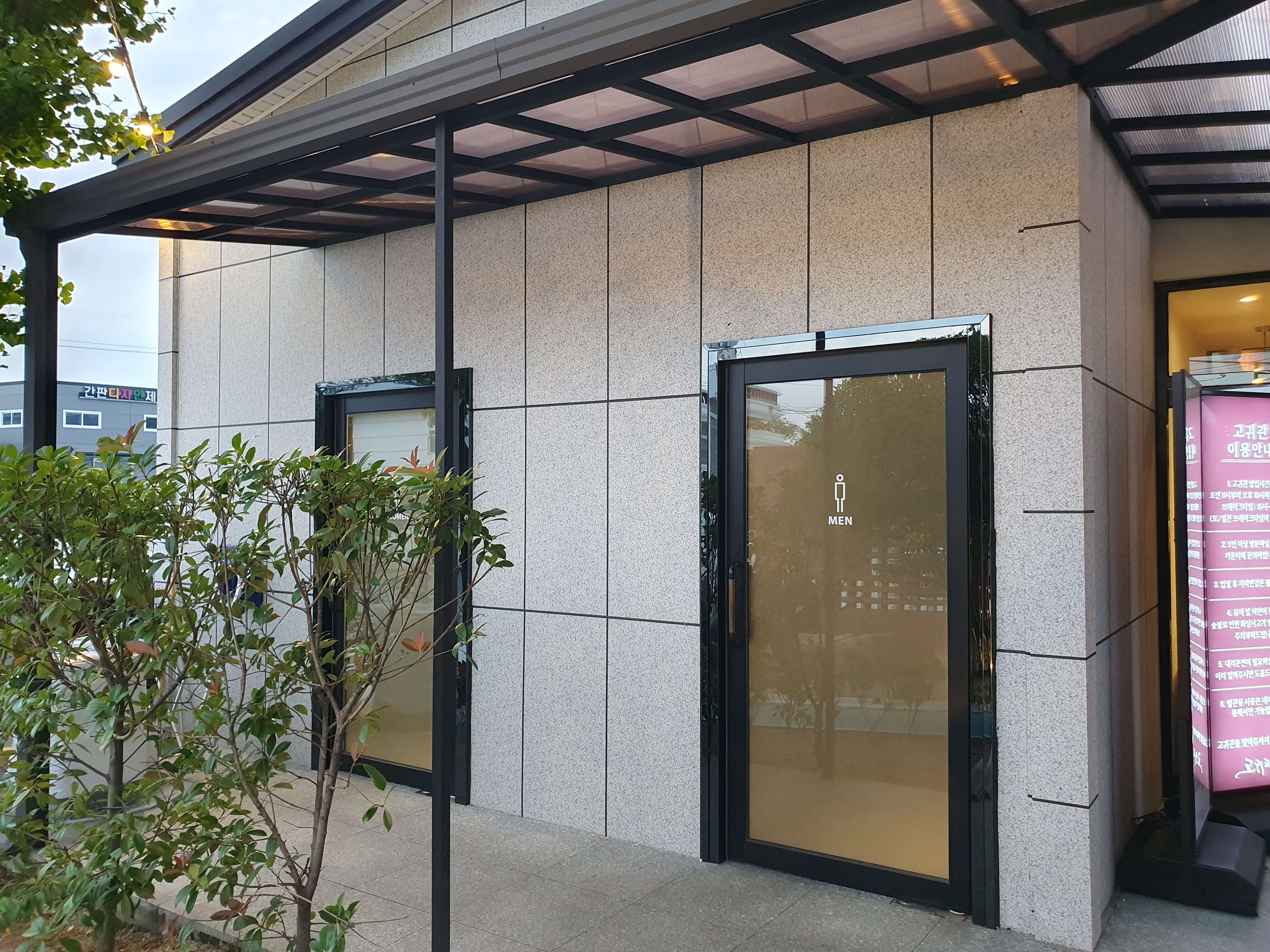 화장실은 식당 외부 입구 왼쪽(좌측)에 에 있습니다.