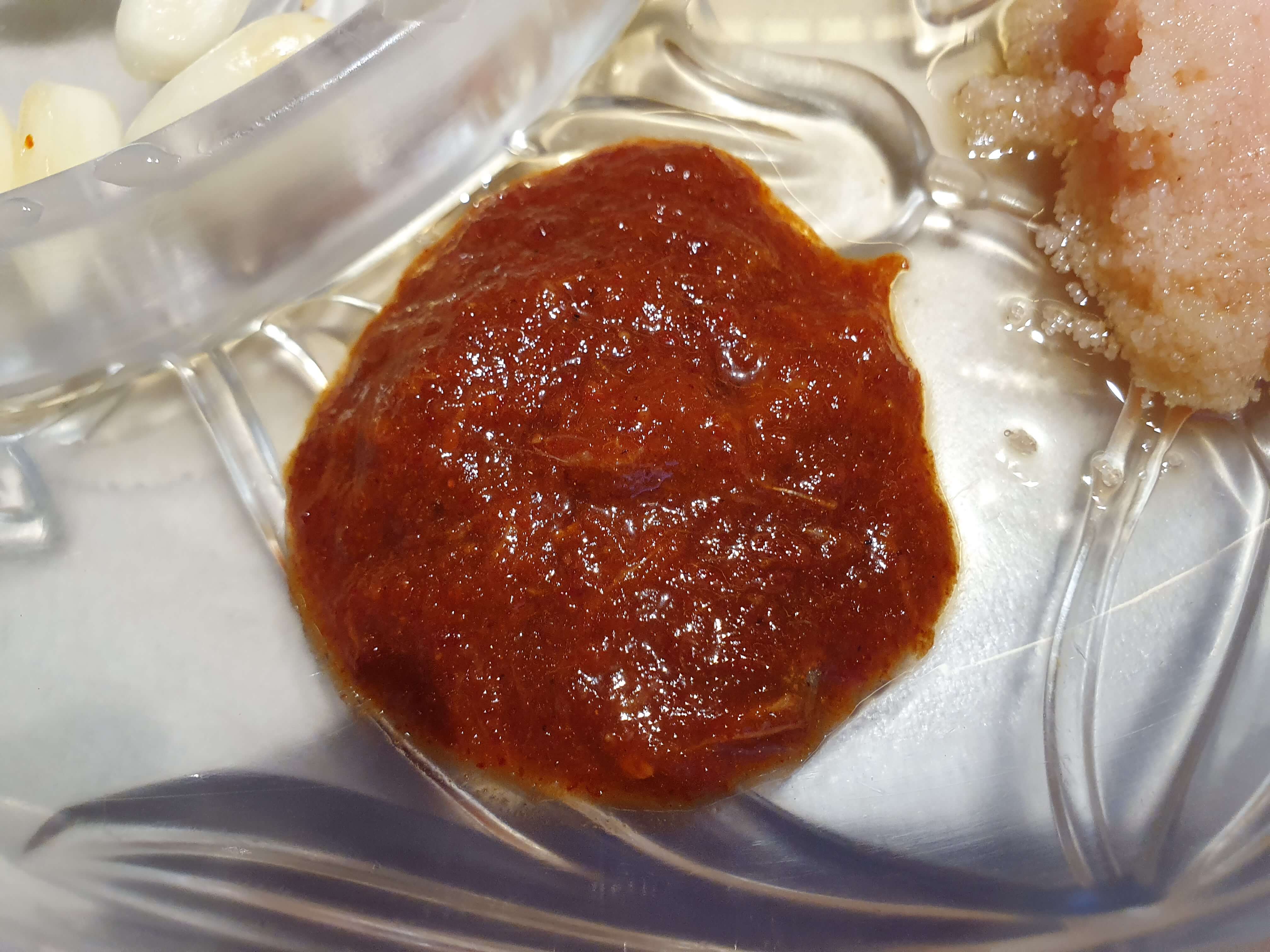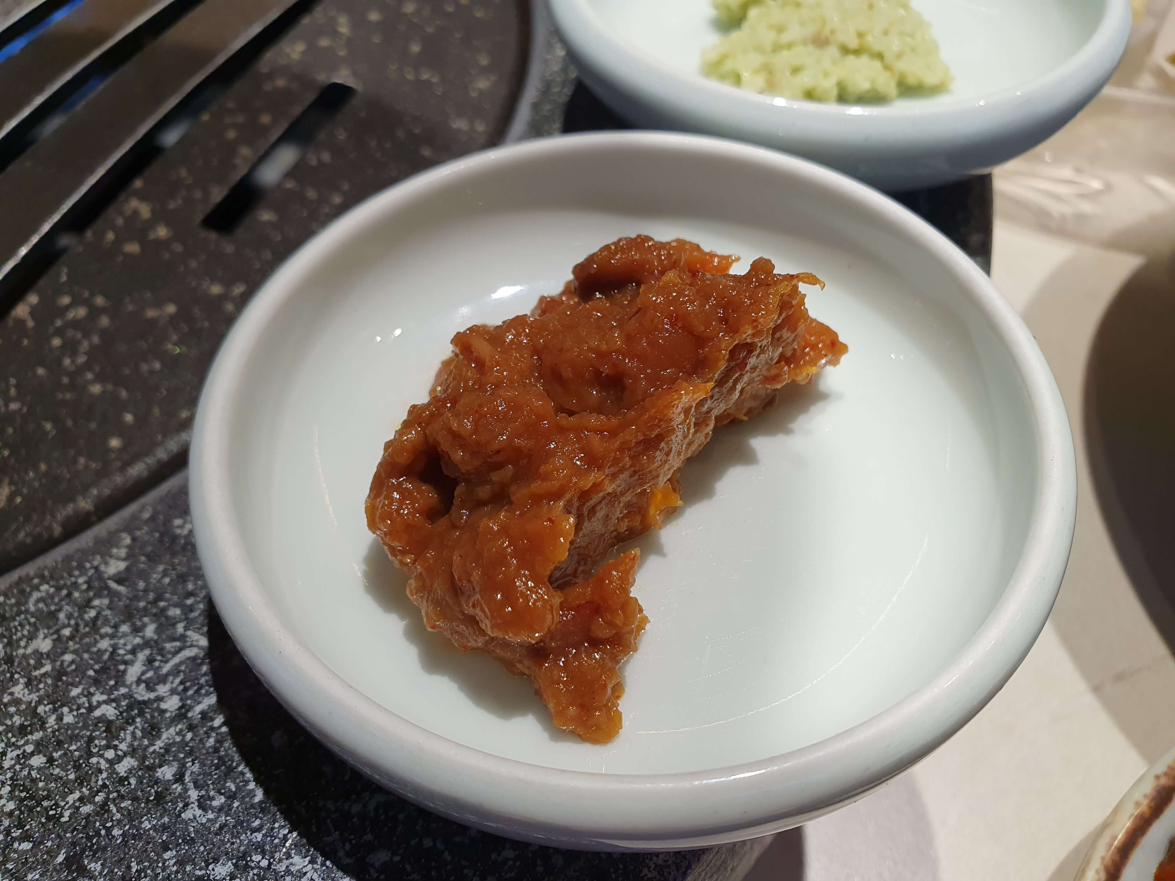 돼지갈비를 찍어먹는 소스인데, 약간 새콤한 맛이 나서 돼지갈비를 질리지 않게 먹을 수 있도록 보조해줍니다.