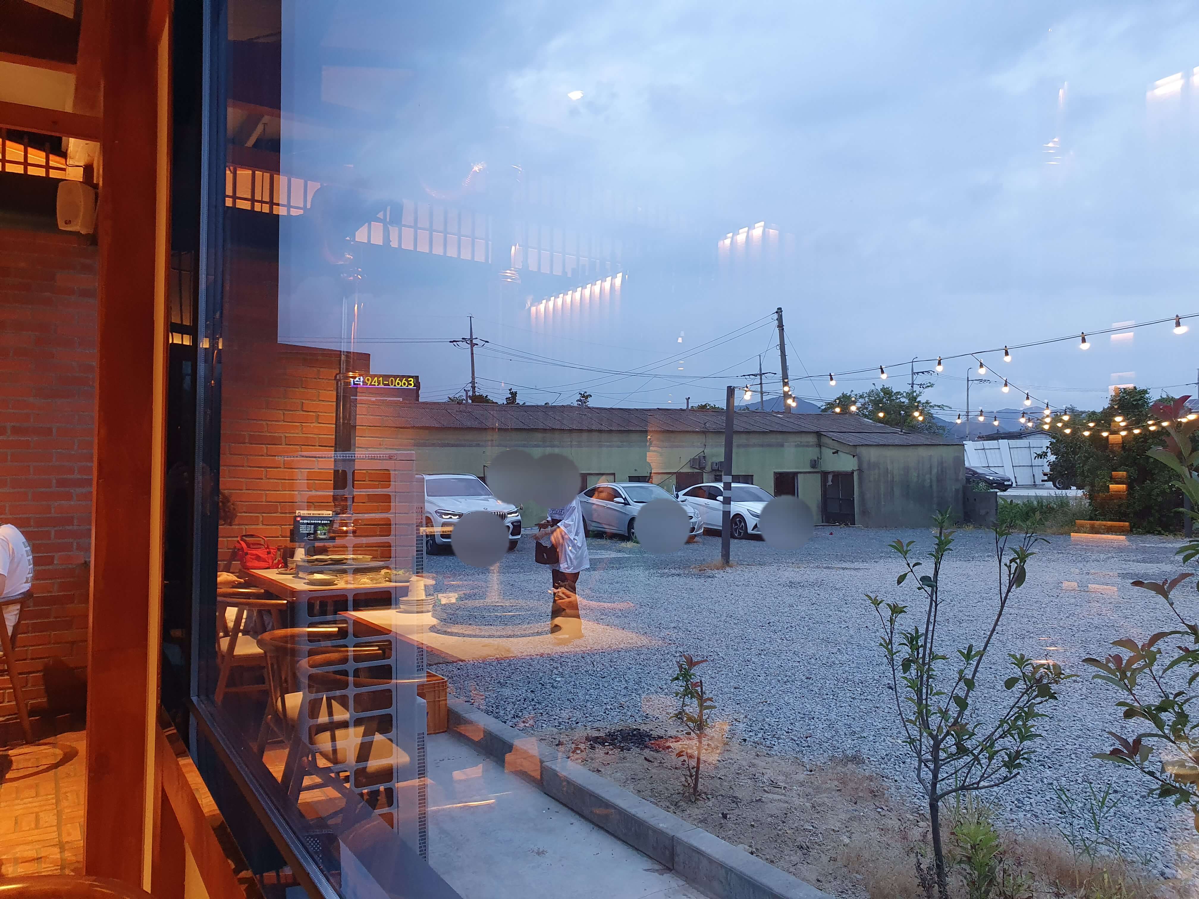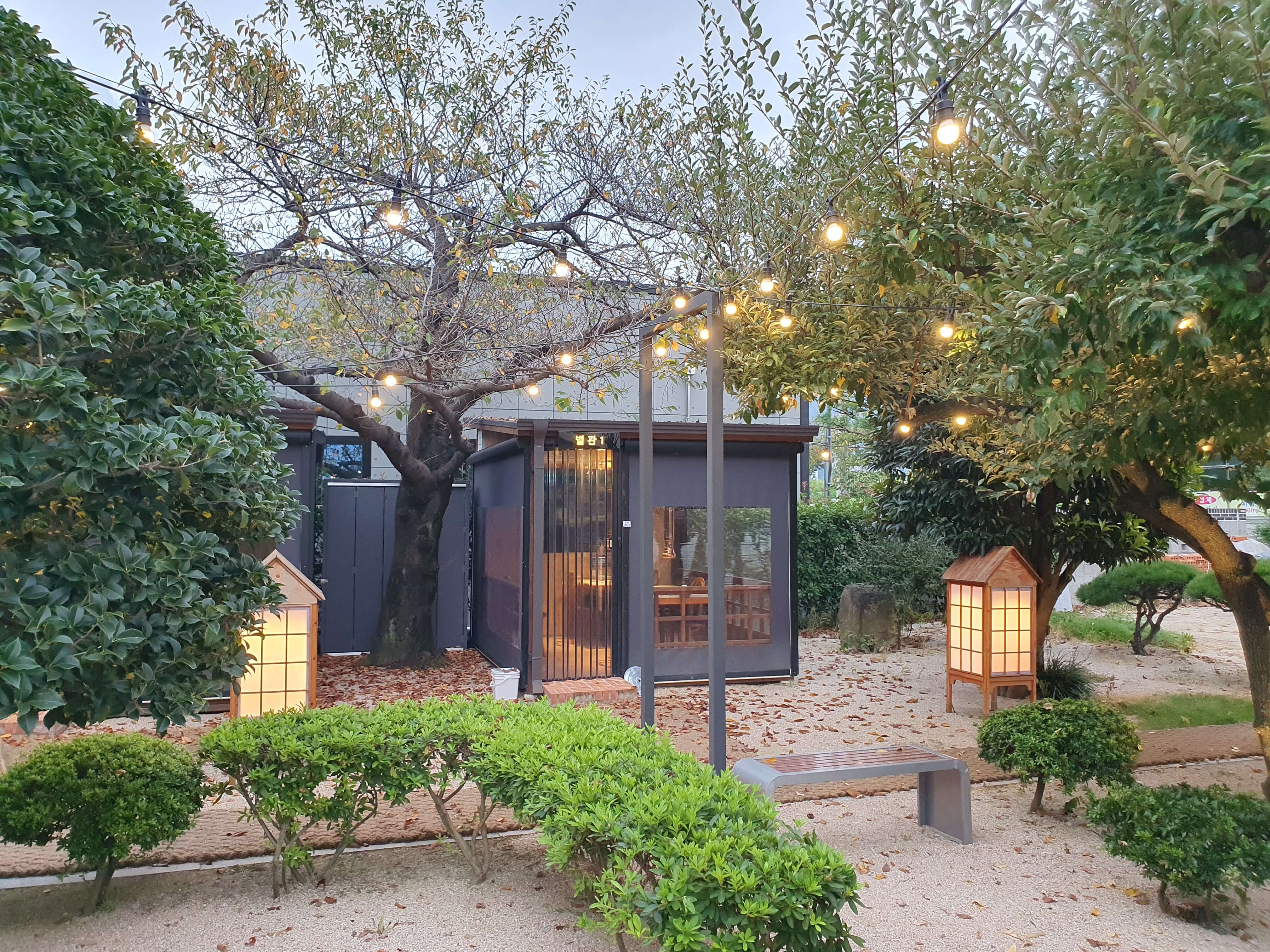식당 앞 정원에 조명이 켜지니 분위기가 좋습니다.