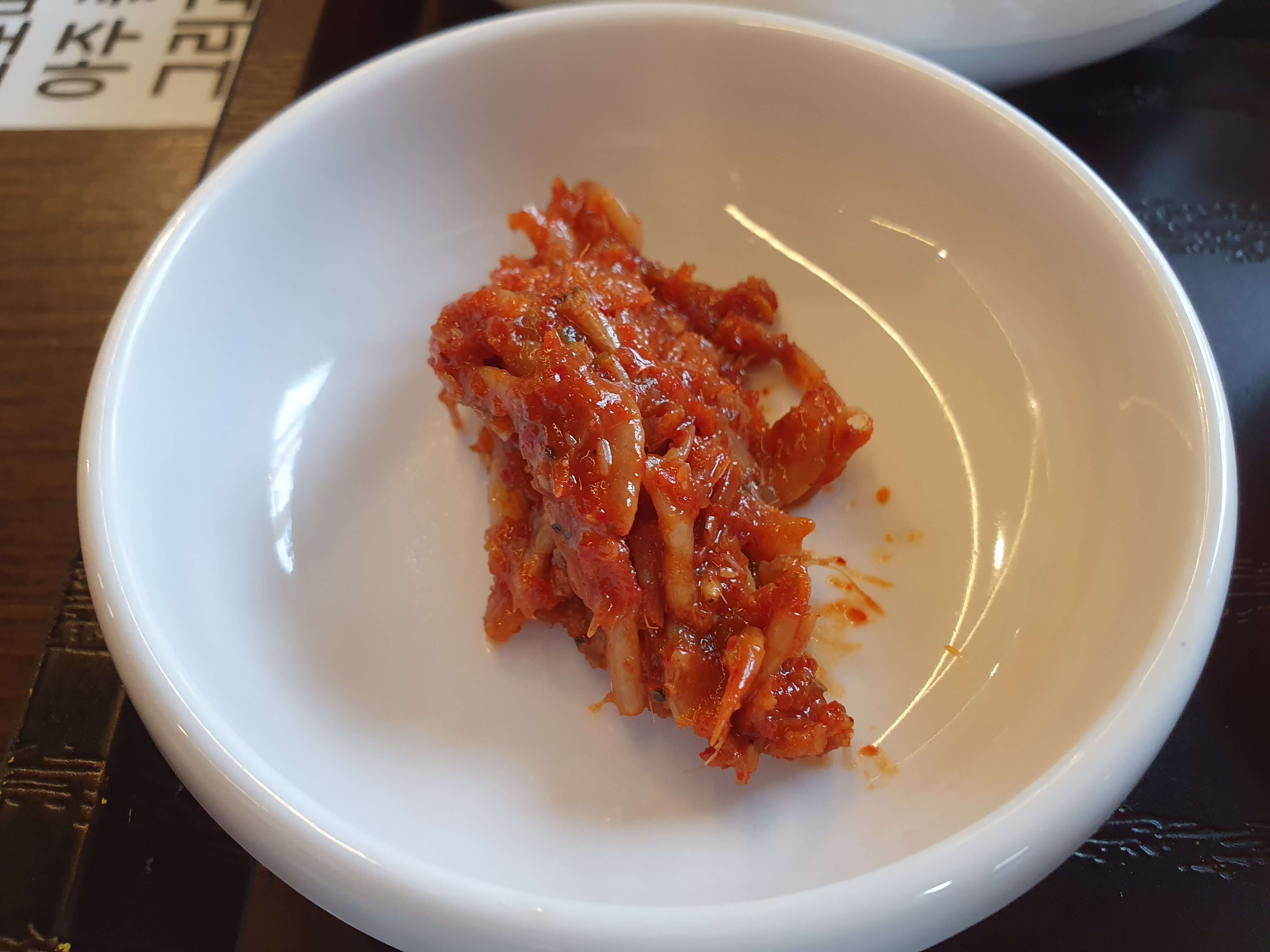 새우젓무침이 제공되는데, 고기 한점에 새우 한 마리씩 올려 먹으면 맛이 꽤 괜찮습니다.