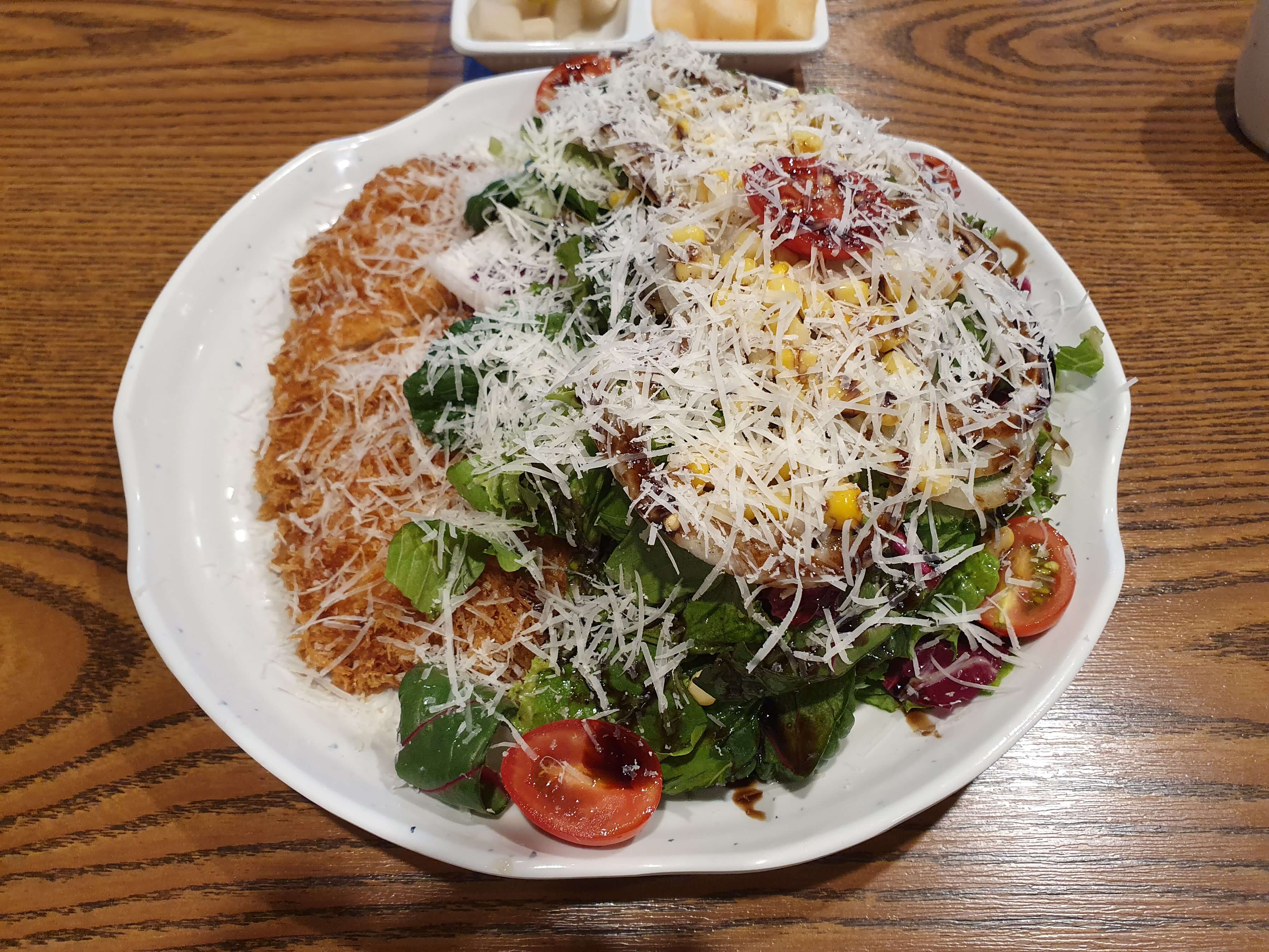 고기만 먹기에는 양심에 찔려 샐러드 돈까스를 주문했습니다.