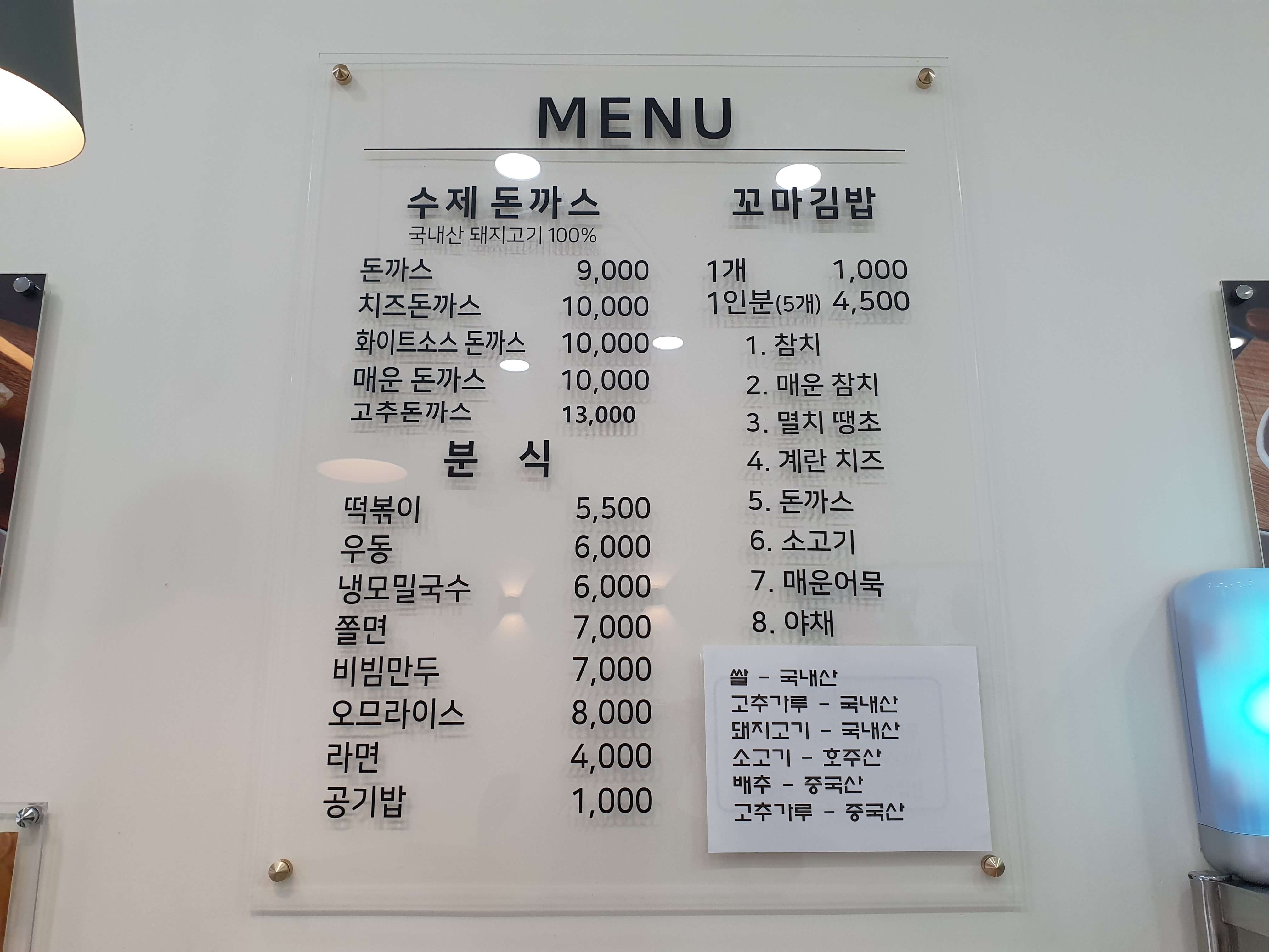 - 주메뉴 : 라면, 돈까스, 오므라이스, 떡볶이, 꼬마김밥 등