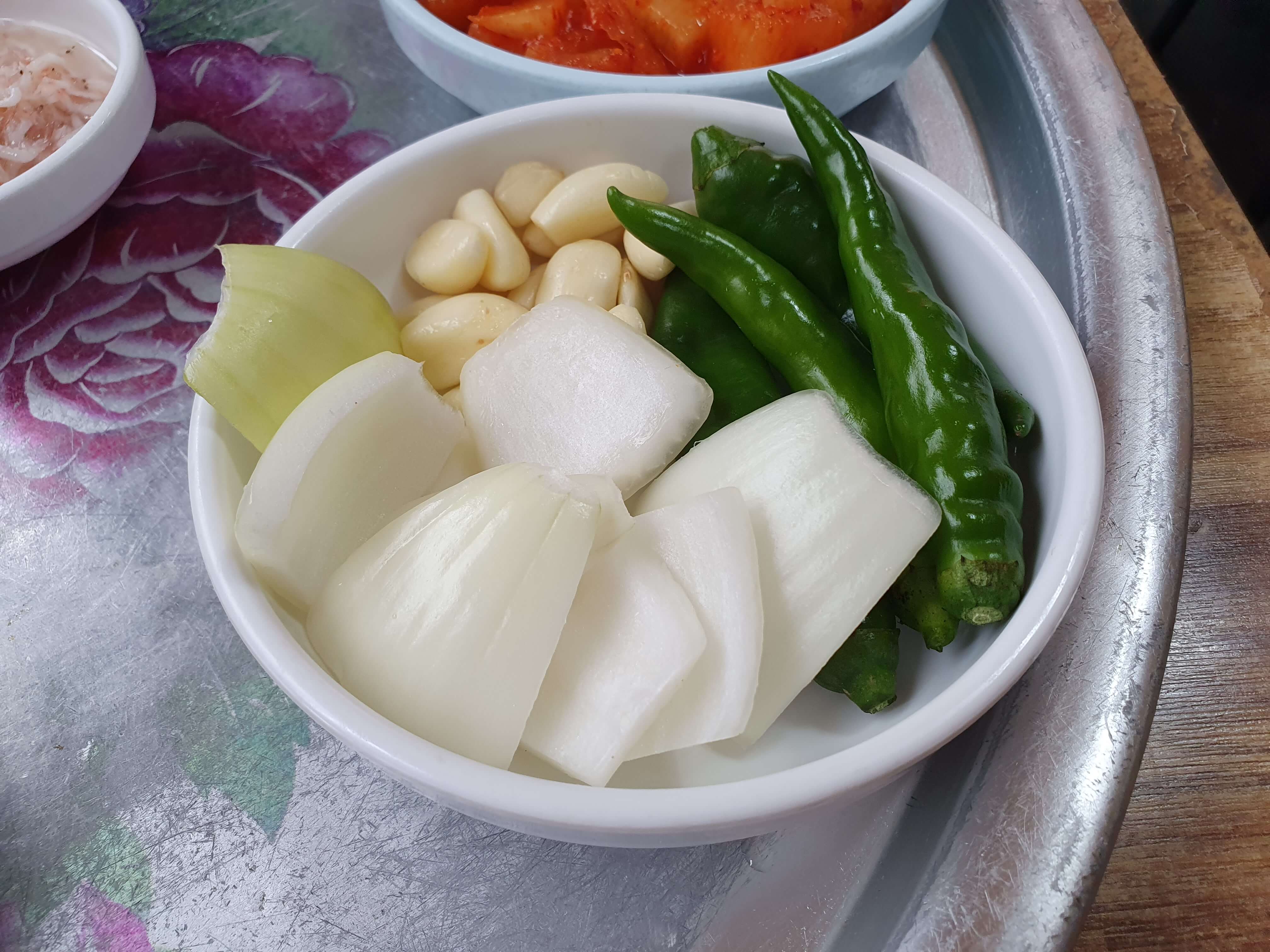 마늘, 양파, 땡초는 신선했으며, 마늘은 맵지 않고, 땡초는 많이 맵습니다.
