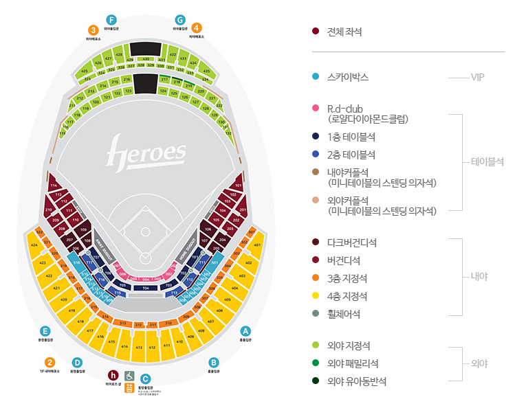 서울 키움 히어로즈(KIWOOM HEROES) 야구경기장, 좌석 위치 및 요금, 입장권, 티켓 가격, 할인 안내
