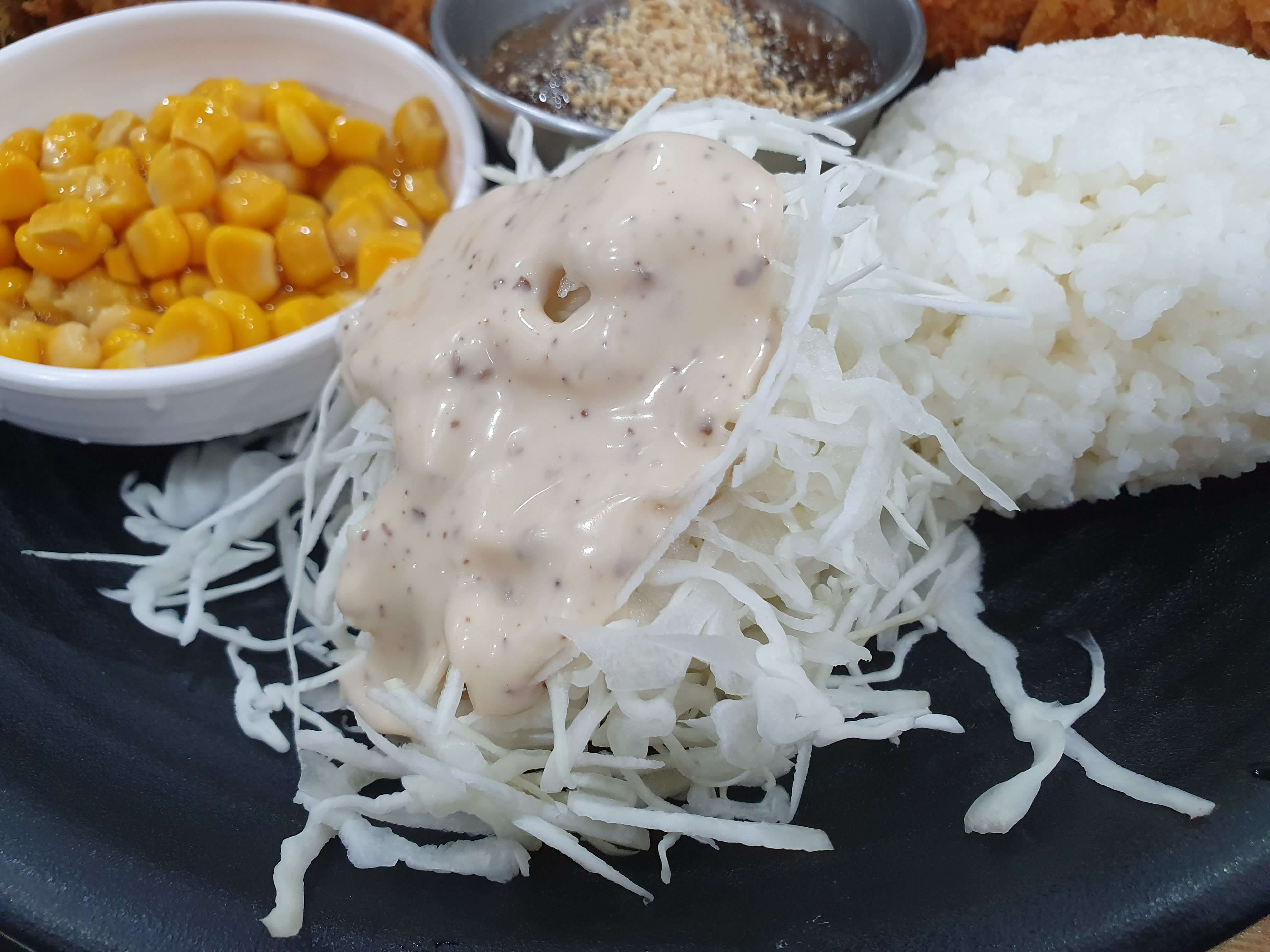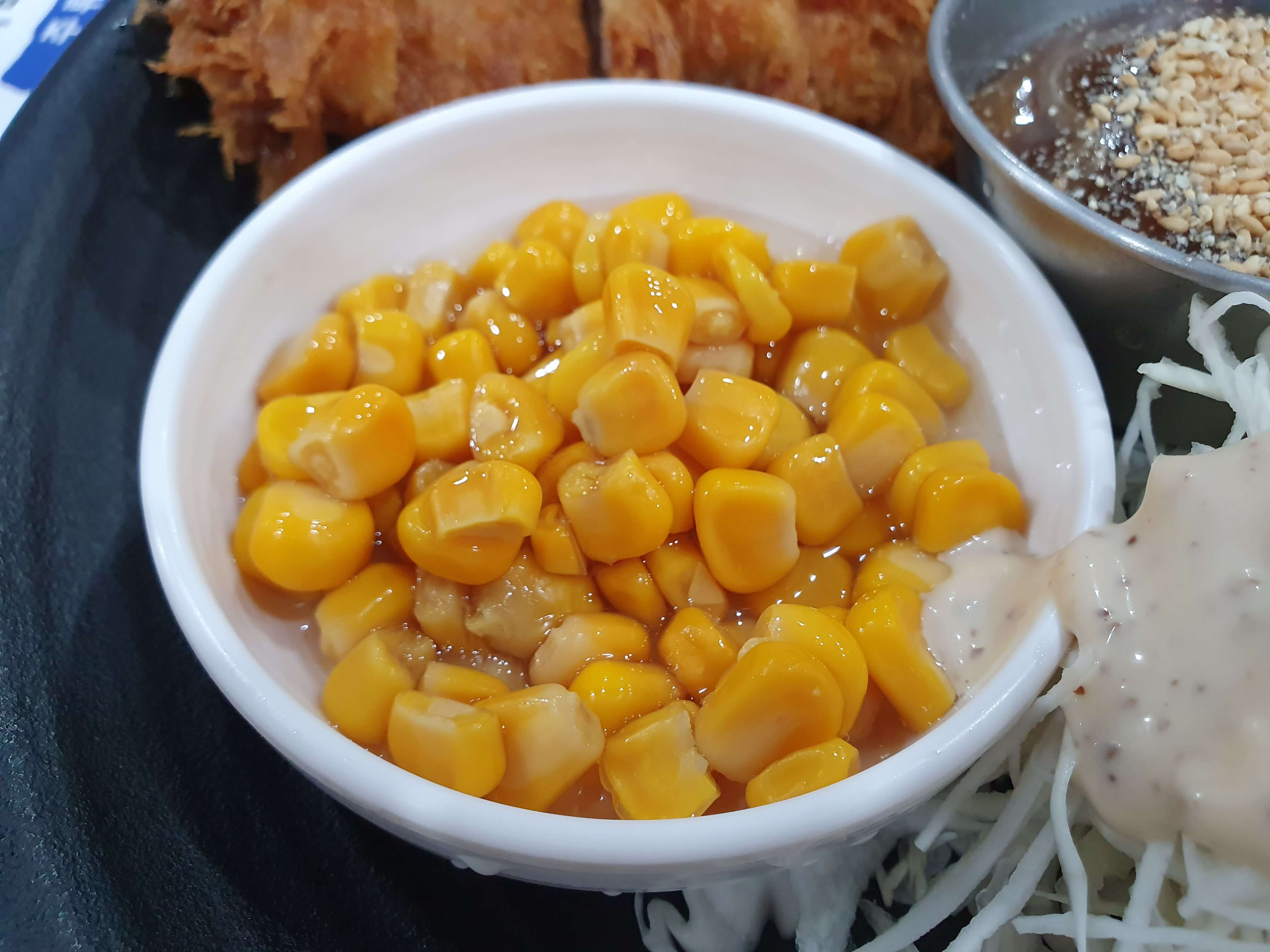 양배추 샐러드도 맛이 평범한 편이며, 같이 나온 옥수수를 섞어서 드시면 조금 더 맛있게 드실 수 있습니다.