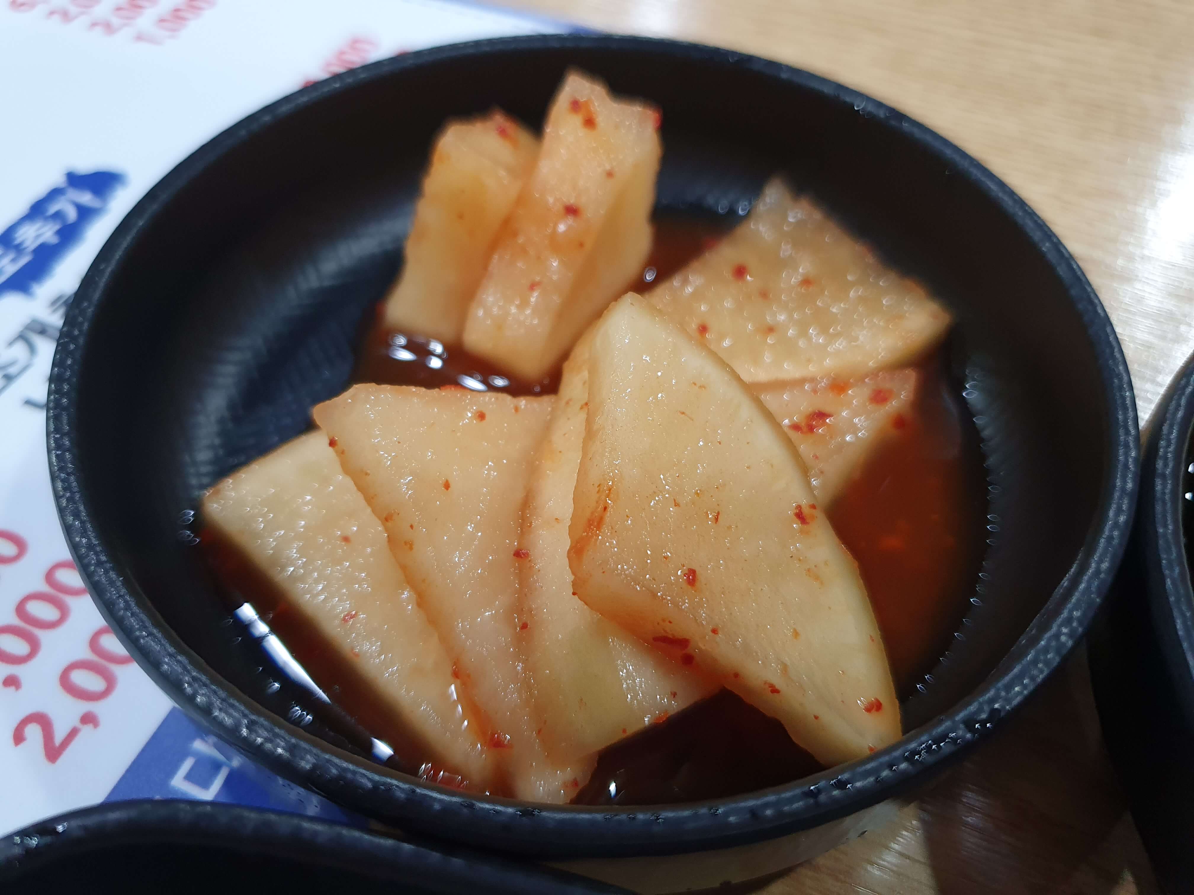 깍두기와 양파 장아찌는 김치에 비해 존재감이 너무 약하지만, 맛이 괜찮은 편입니다.