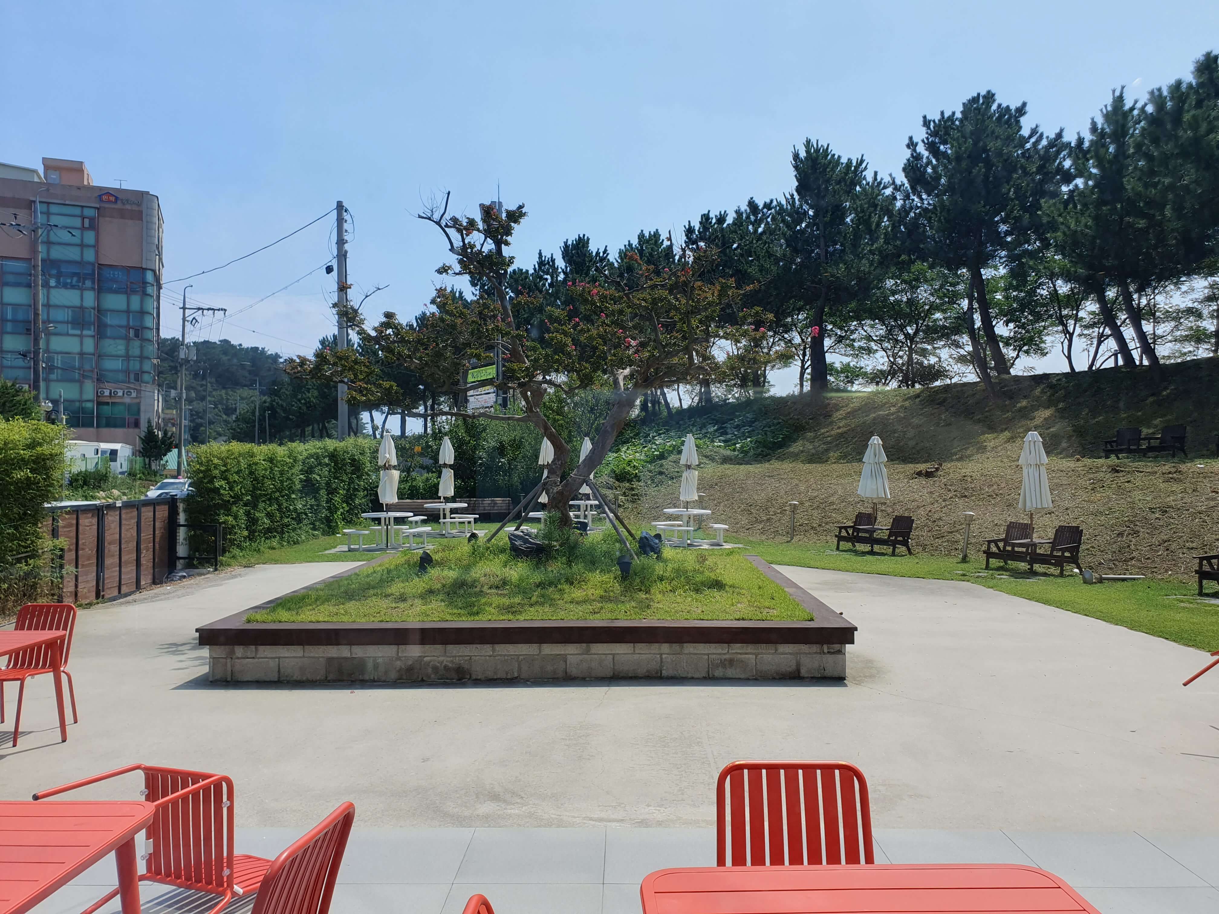건물 왼쪽에 야외 공간도 있지만 8월달에 방문했던터라 더워서 아무도 앉지 않았습니다.