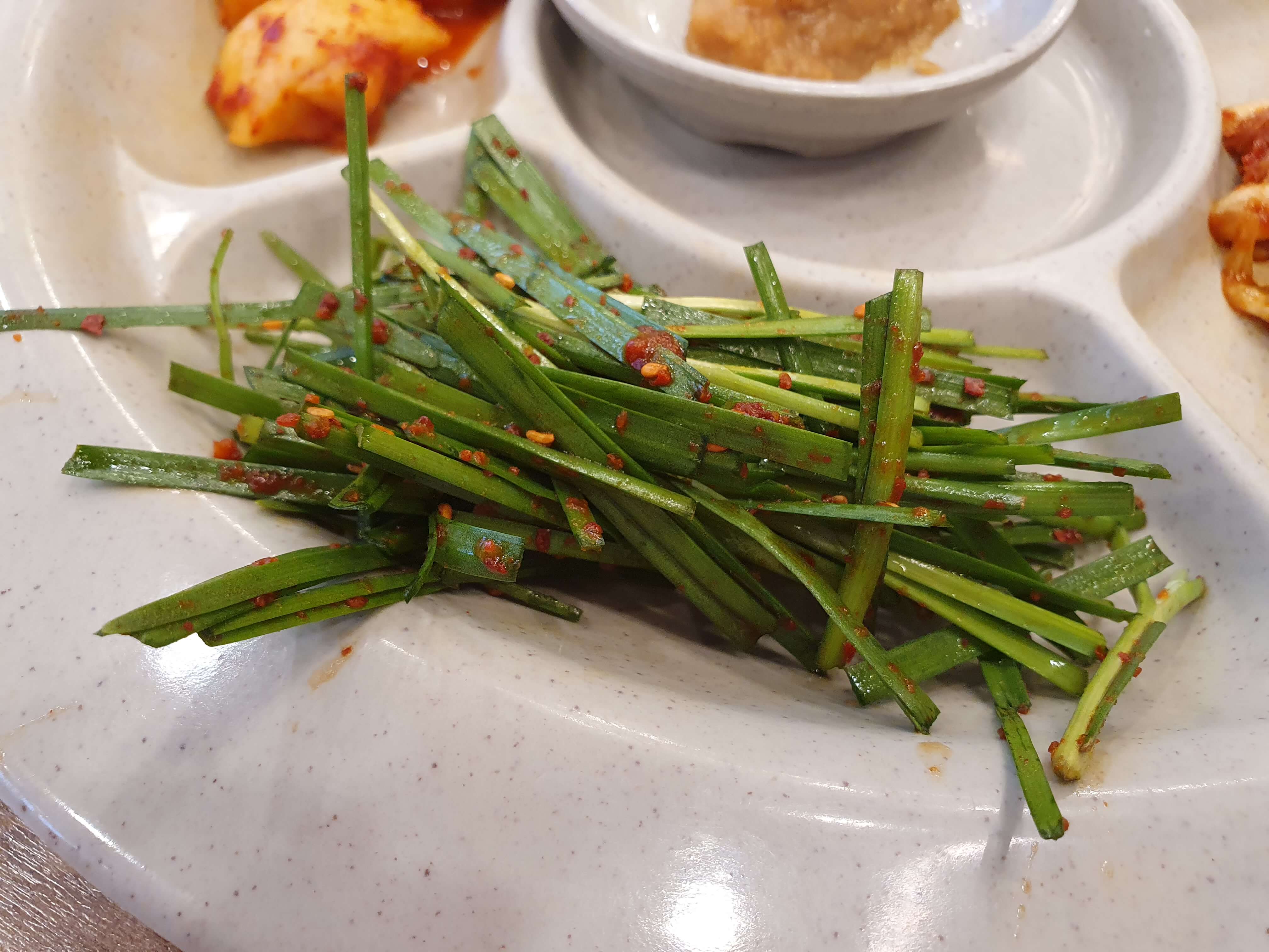 부추와 다진양념장(다대기)이 국밥에 미리 들어가 있습니다.