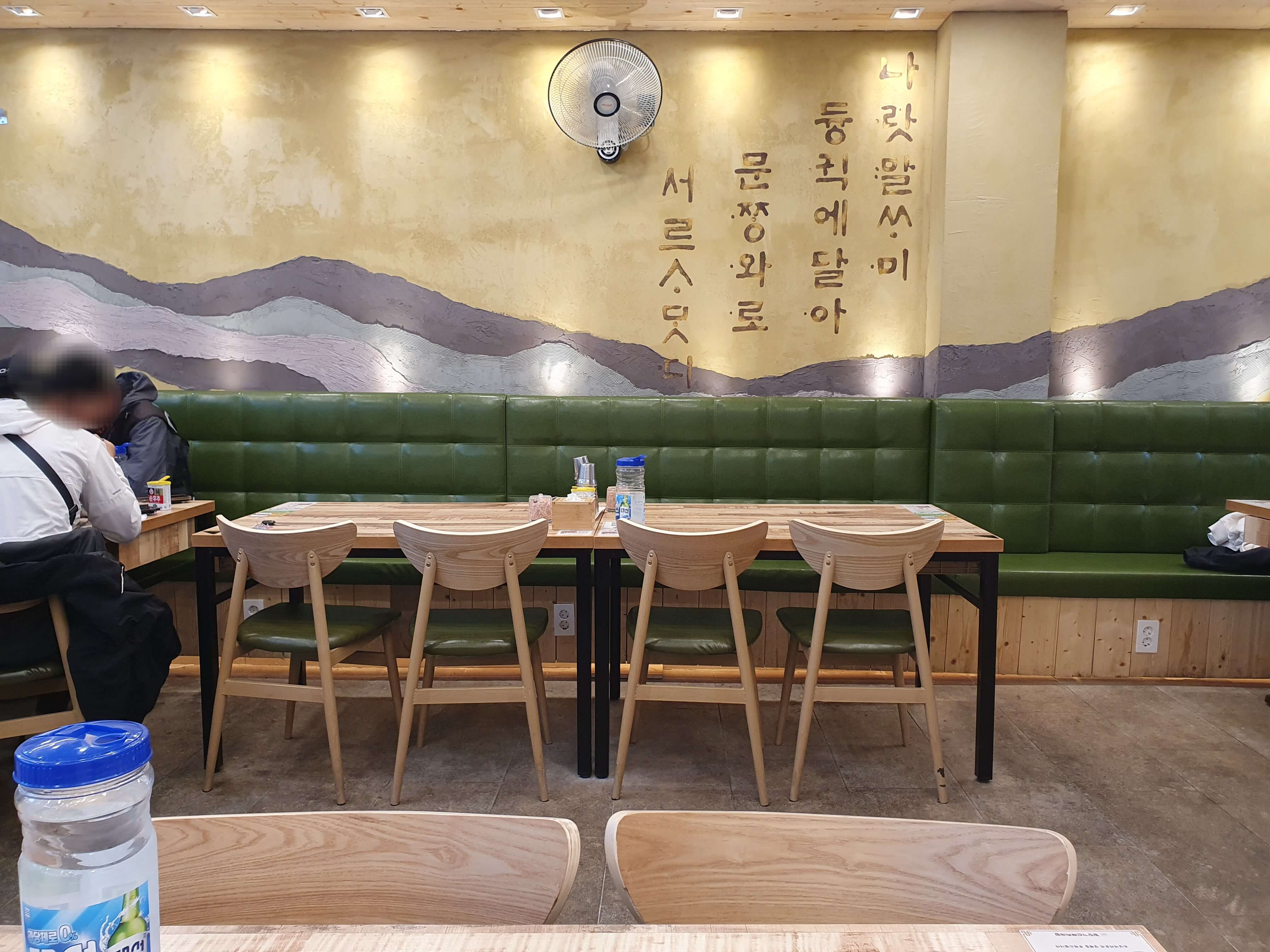 내부(실내)는 깔끔하며, 4인 테이블로 구성되어 있습니다.