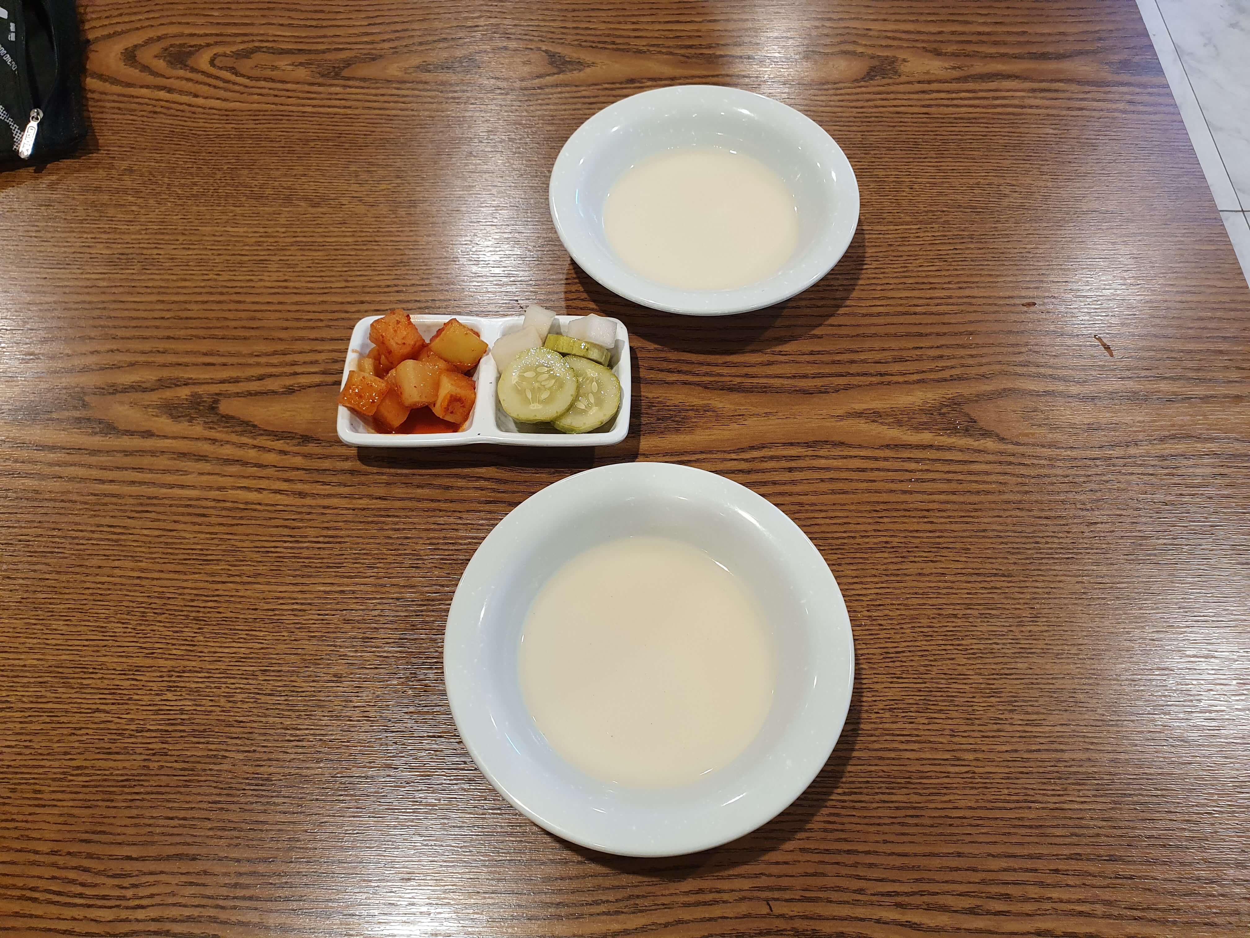 메뉴를 주문하면 크림스프, 깍두기, 피클이 먼저 제공됩니다.