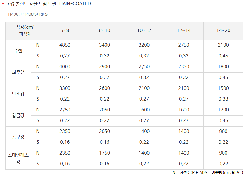 N = 회전수(R,P,M)S = 이송량(nn /REV .)