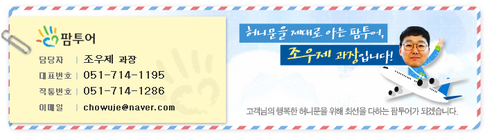 신혼여행 전문 여행사 팜투어 부산지사 조우제 과장 : 051-714-1286