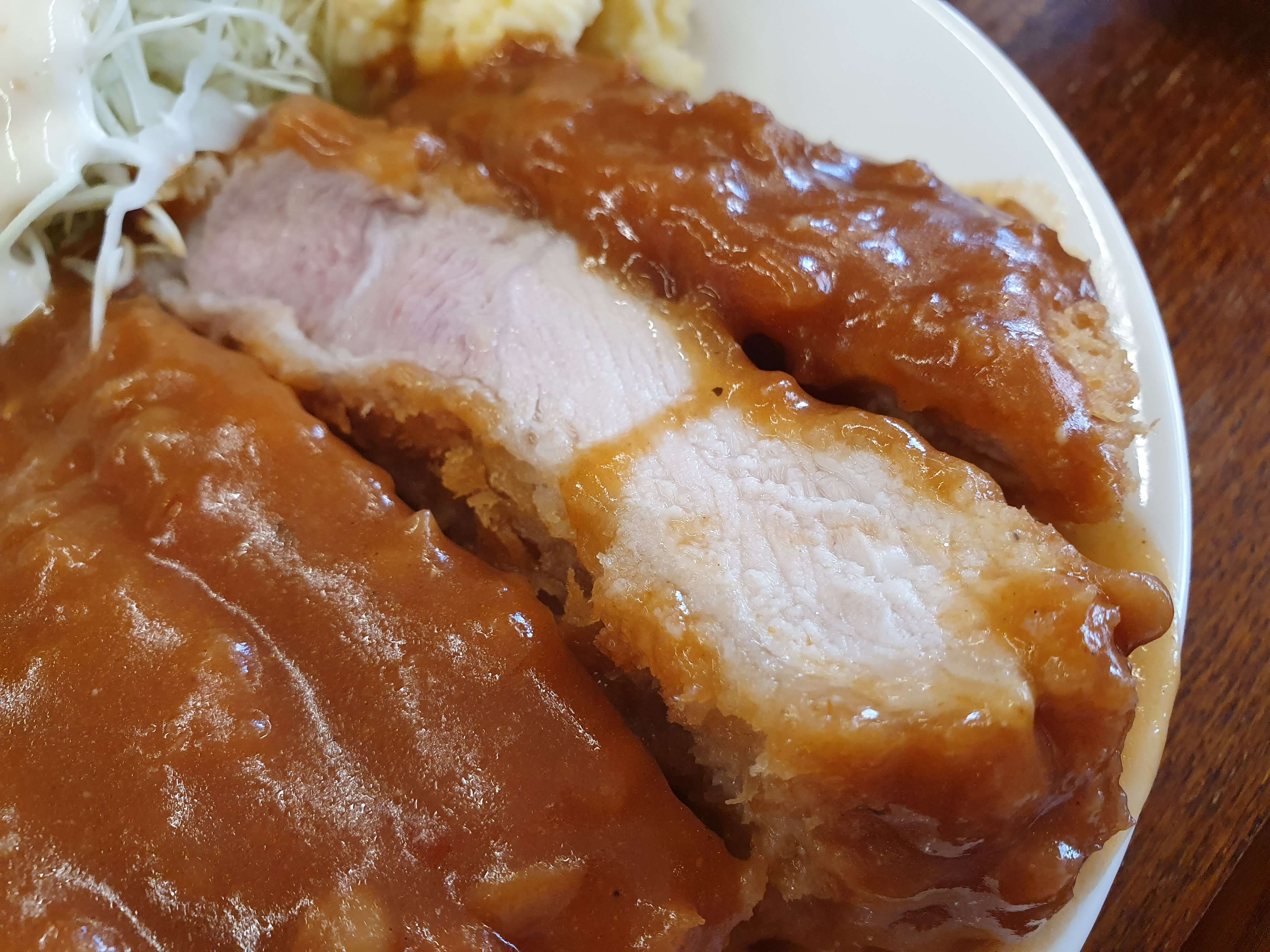 진득한 소스가 돈까스 전체에 부어져서 보기만 해도 군침이 돕니다.