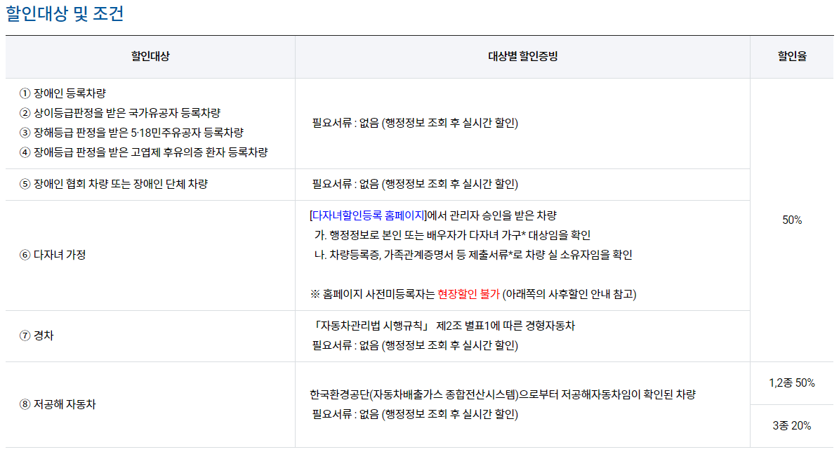 - 할인율 : 50% (저공해 3종 20%)