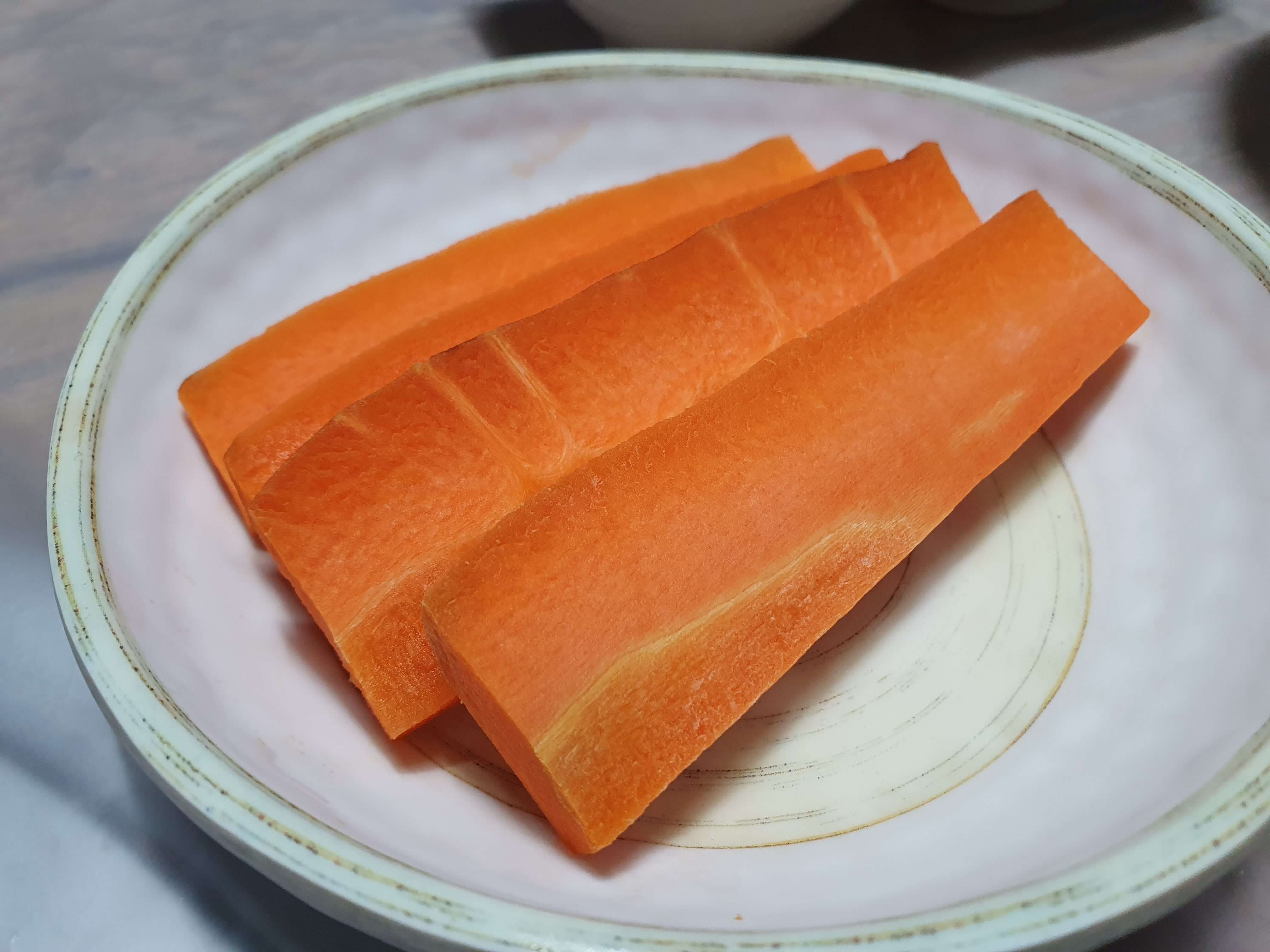 새우머리는 잘 잘라서 옆 접시에 담아주고, 몸통만 남겨줍니다.