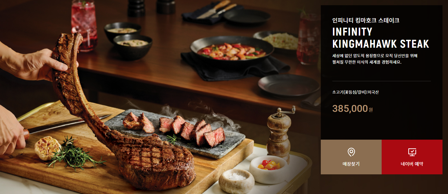 인피니티 킹마호크 스테이크(INFINITY KINGMAHAWK STEAK) 가격 및 메뉴 구성