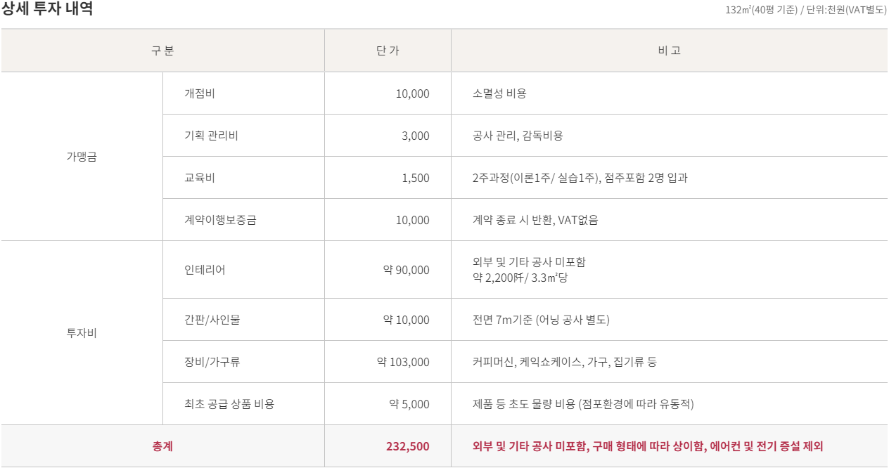 | 최초 공급 상품 비용 | 약 5,000 | 제품 등 초도 물량 비용 (점포환경에 따라 유동적) | |