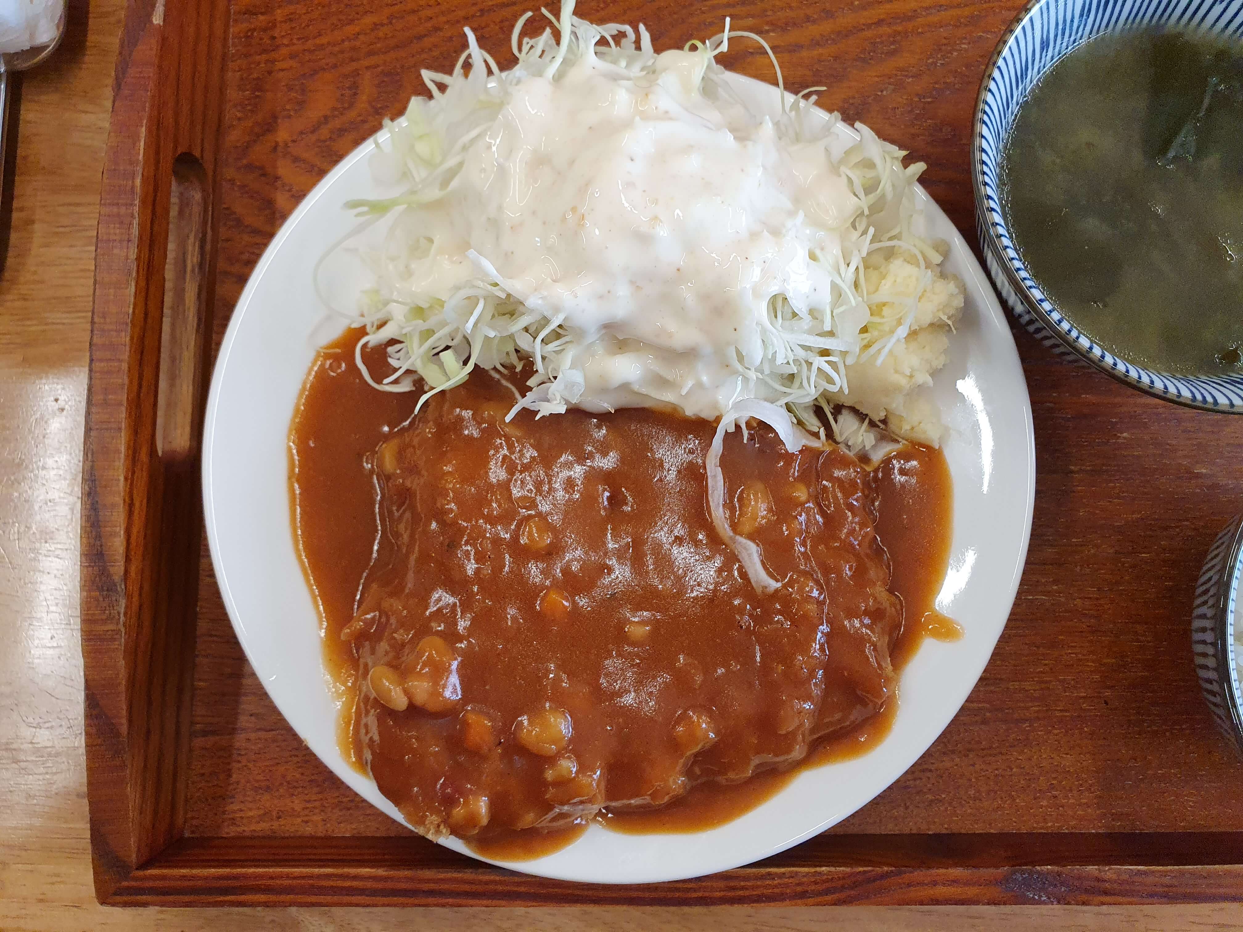 돈까스의 고기는 카츠동에 올라가는 돈까스고기와 같은 두껍고 비계가 끝에 붙어 있는 돼지고기라서 맛도 아주 좋습니다.