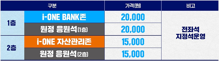 | 1층 | i-ONE BANK존 | 20,000 | 전좌석 지정석 운영 |