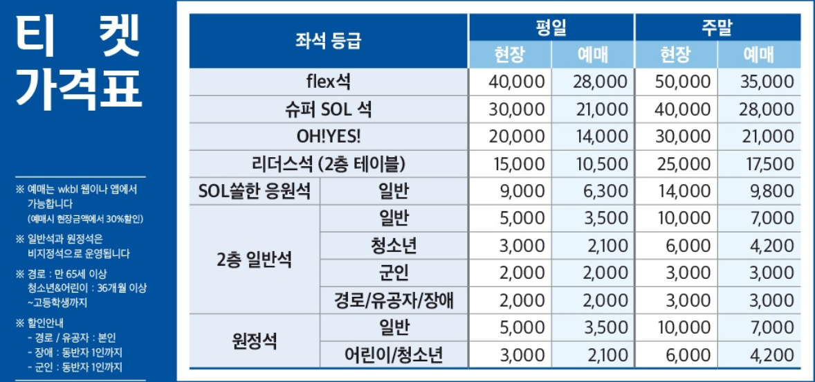 | 슈퍼 SOL석 | 30,000 | 21,000 | 40,000 | 28,000 | |