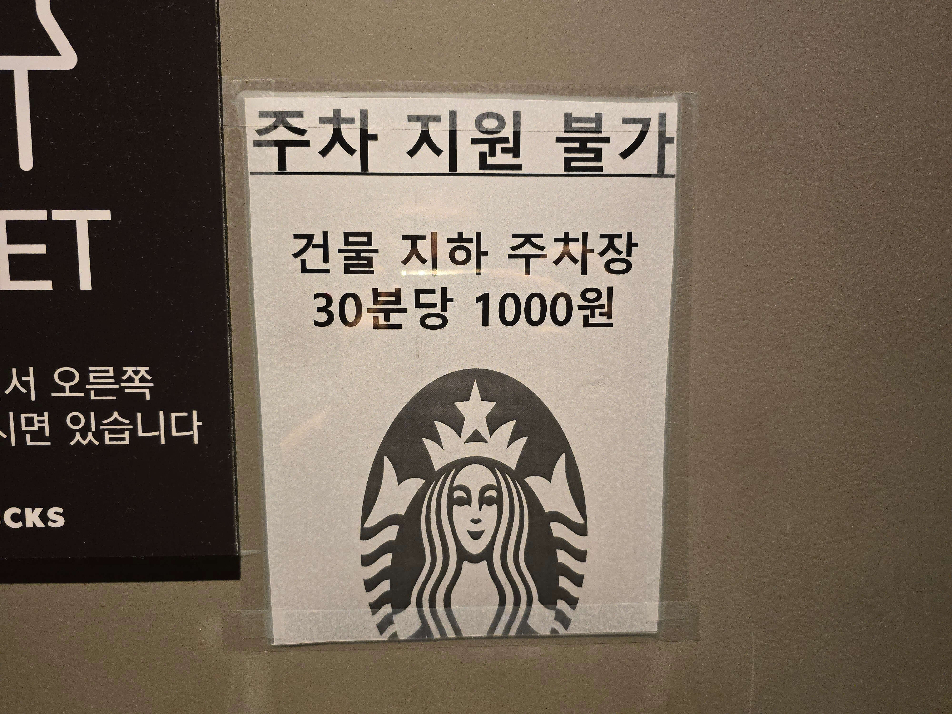 빌딩 1층에 있지만 건물 지하 주차장 주차요금을 지원하지 않습니다.